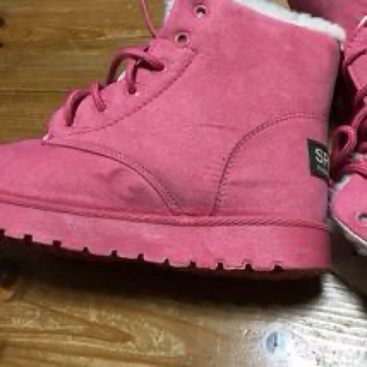 難あり フェイクムートンブーツ ピンク 23.5センチ 未使用保管品 レースアップブーツ ショートブーツ レディース 菅185 收藏