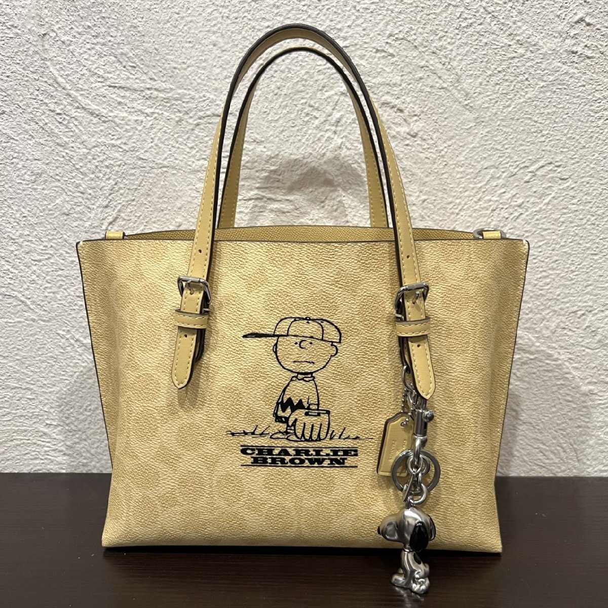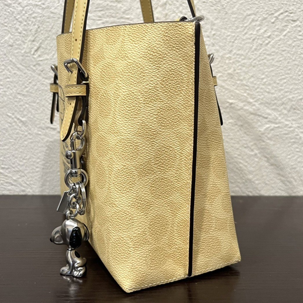 【77】美品 COACH×PEANUTS コラボ モリー トートバッグ25 チャーリー・ブラウン シグネチャー イエロー系 キーホルダー付き (3242) 收藏