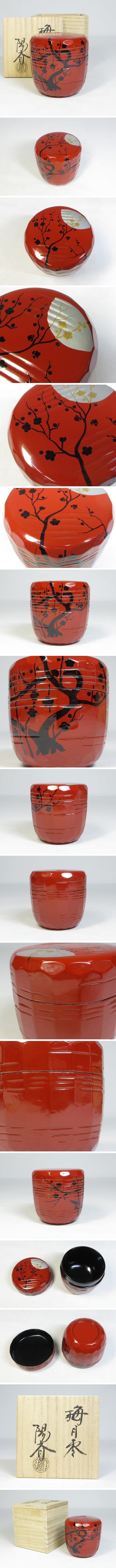 【B0862c】茶道具 塗師 岡本陽斎 朱塗 梅月棗 共箱 即決 收藏