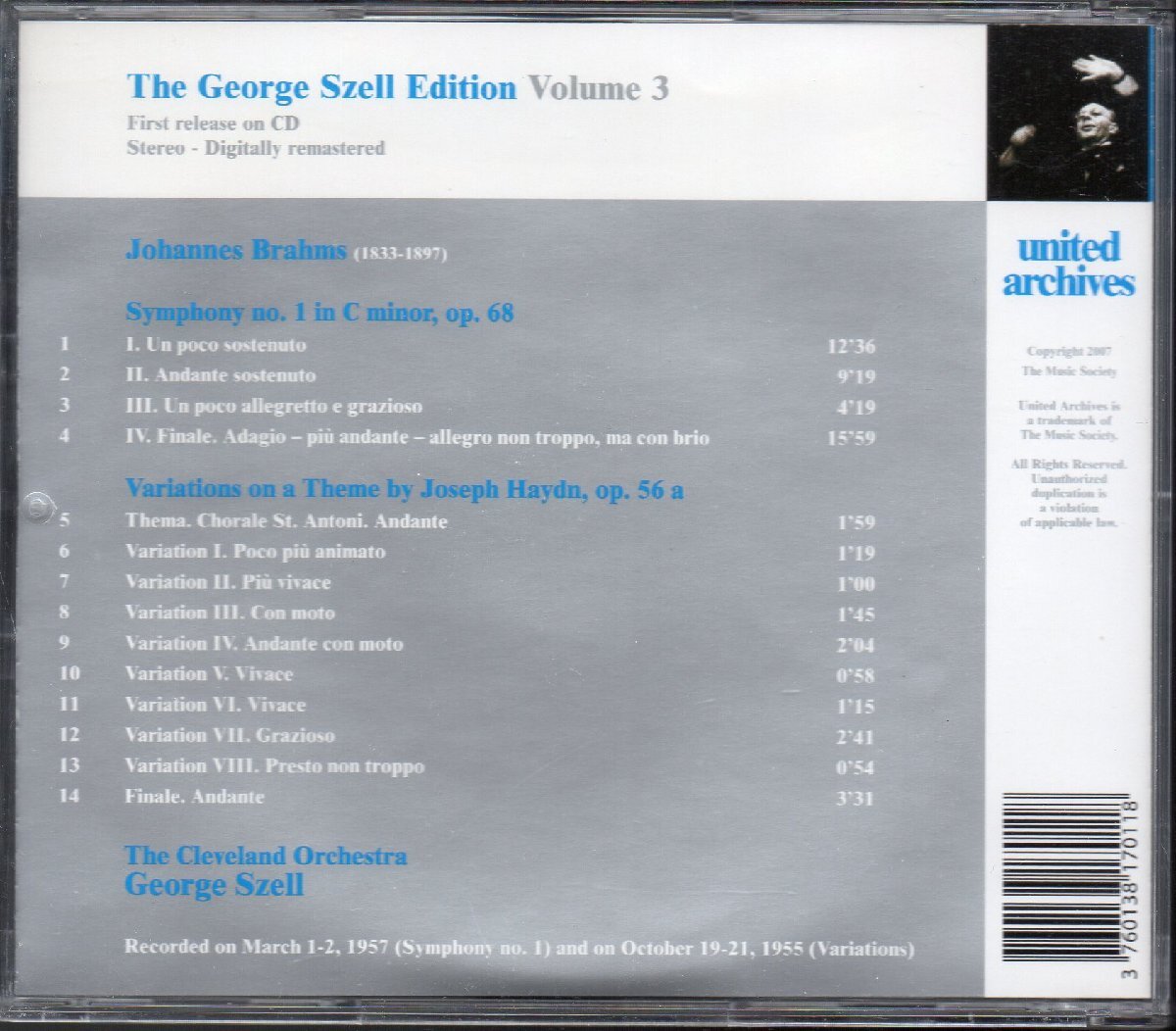ブラームス:交響曲第1番,ハイドン変奏曲 セル=Clev /57, 55年 (UAR011) 收藏