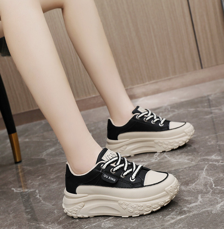 厚底スニーカー レディース 運動靴 軽量 美脚 インヒールシークレットシューズ 疲れにくい レースアップ 身長アップ ブラック 23.0 cm 收藏