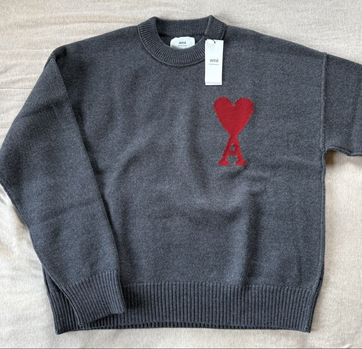 XL新品 AMI Paris ビッグ グラフィック ブランドロゴ ウール ニット セーター 長袖 グレー XL アミ パリス メンズ ami alexandre mattiussi 收藏