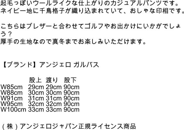 街の洋服屋フタバ アンジェロガルバス W95cm 25-5306-03 メンズ パンツ 40代 50代 60代 秋 冬 カジュアル ネイビー 收藏