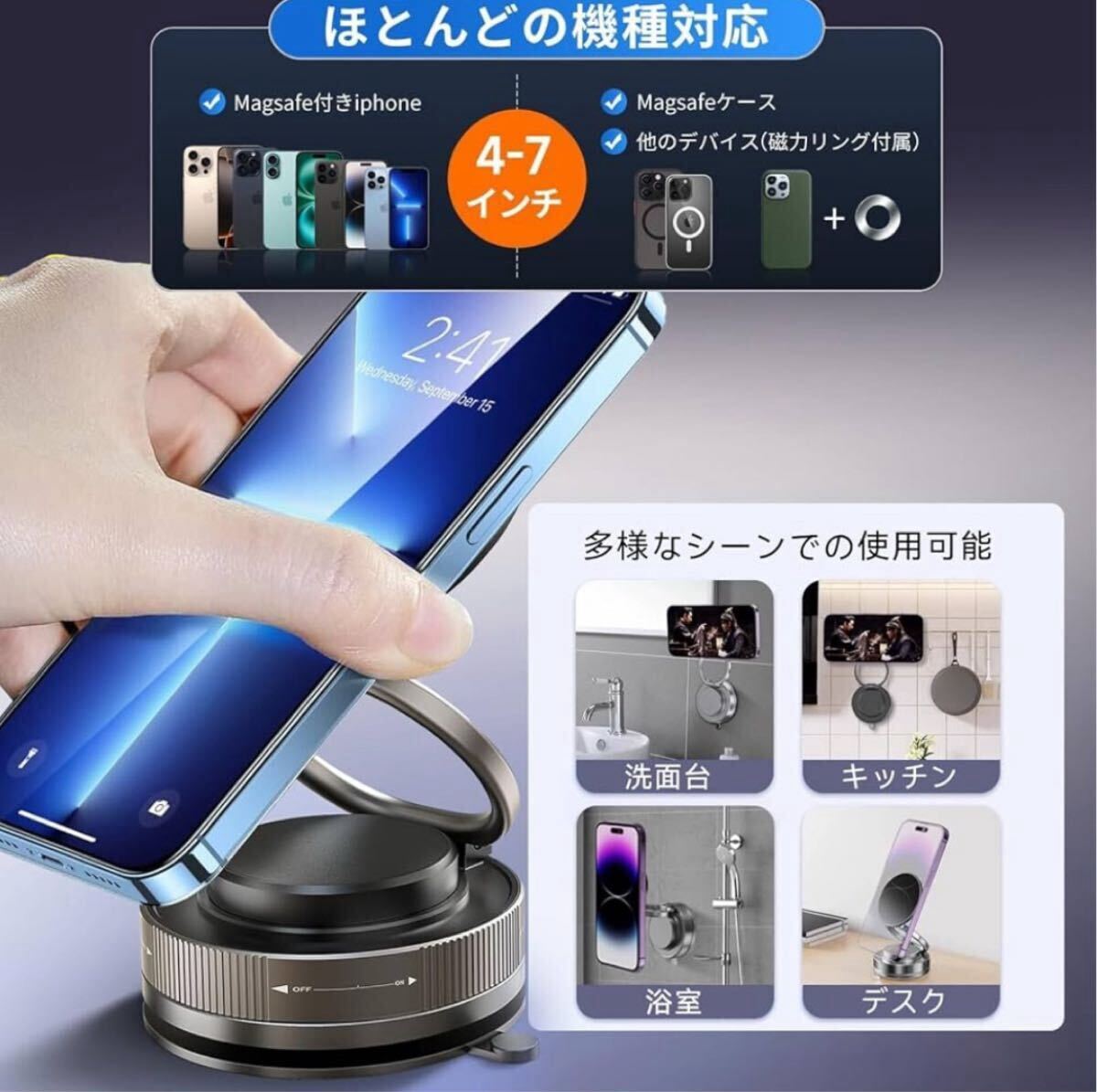 車載スマホホルダー 真空吸着+超強力磁力 折りたたみ式 スマホスタンド マグネット式 車 magsafe iPhone Android 收藏