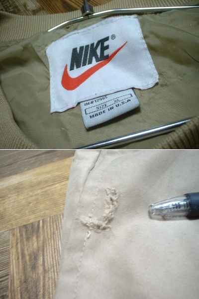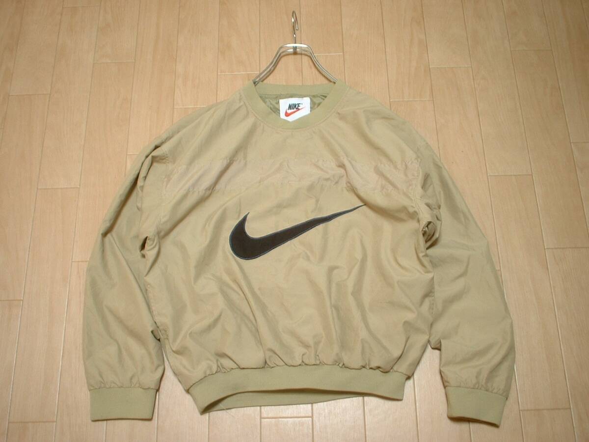 90sビンテージUSA製NIKEスウッシュ刺繍ウインドブレイカーXL米国製プルオーバー正規ナイキMADE IN USAチノベージュナイロンジャケット 收藏