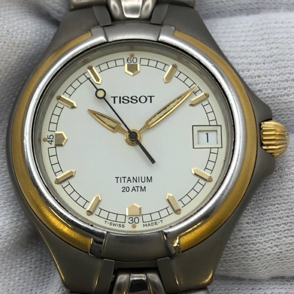 1円~/TISSOT/ティソ/T660/3針/デイト/ホワイト文字盤/チタニウム/20ATM/純正ベルト/クォーツ/メンズ腕時計/ジャンク/S084