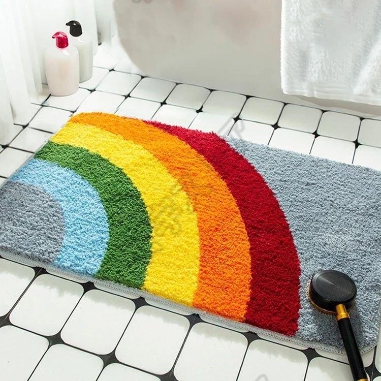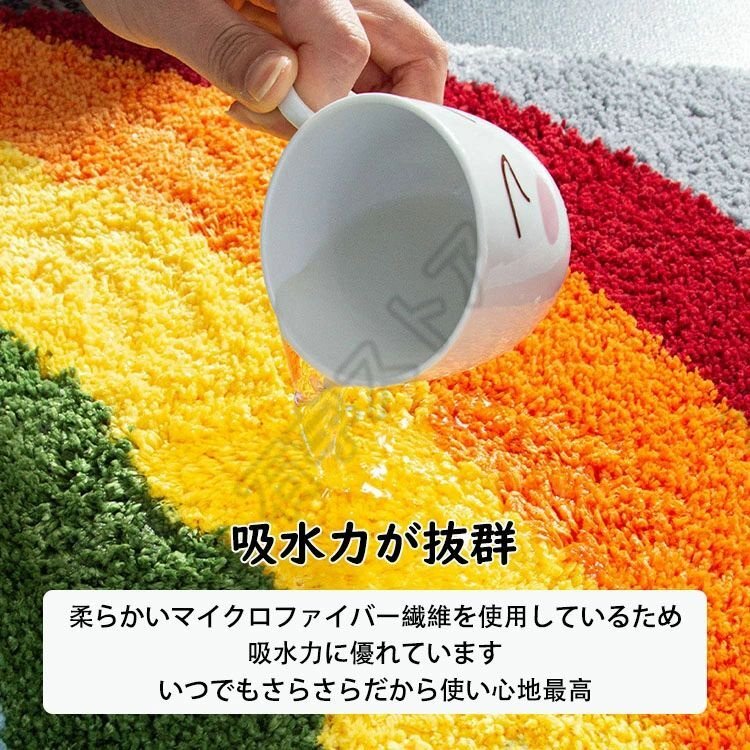 バスマット 虹柄 ふわふわ 足拭きマット 玄関マット カーペット 丸洗い可 風呂 マイクロファイバー 吸水 滑り止め付き 50*80cm shw298 收藏