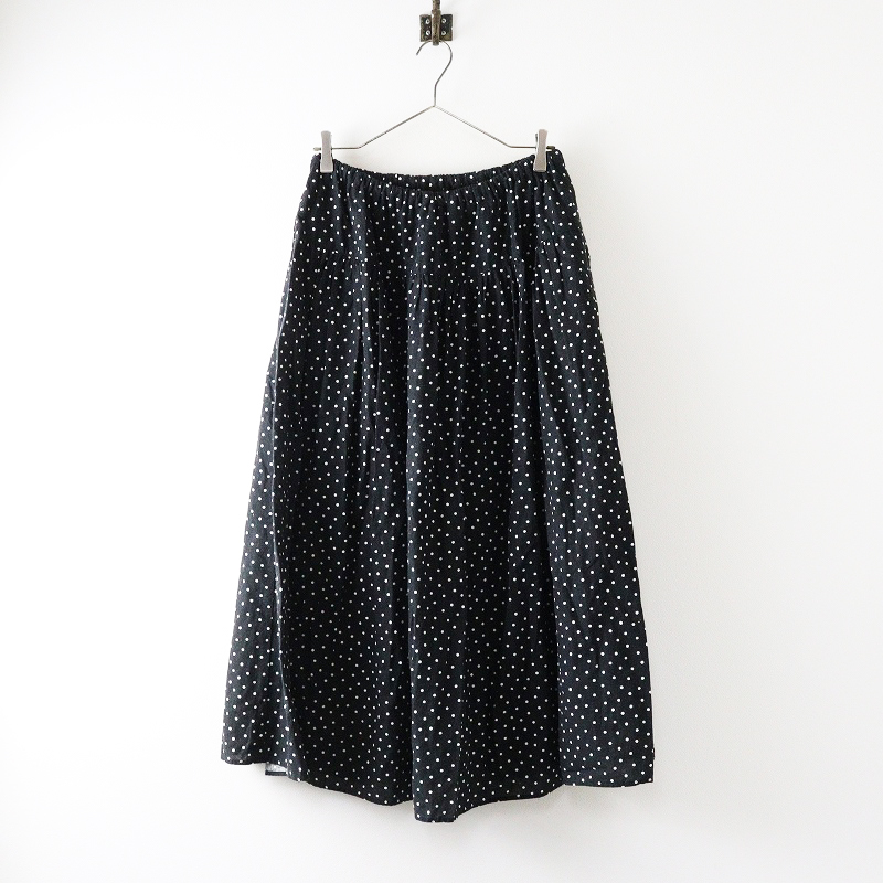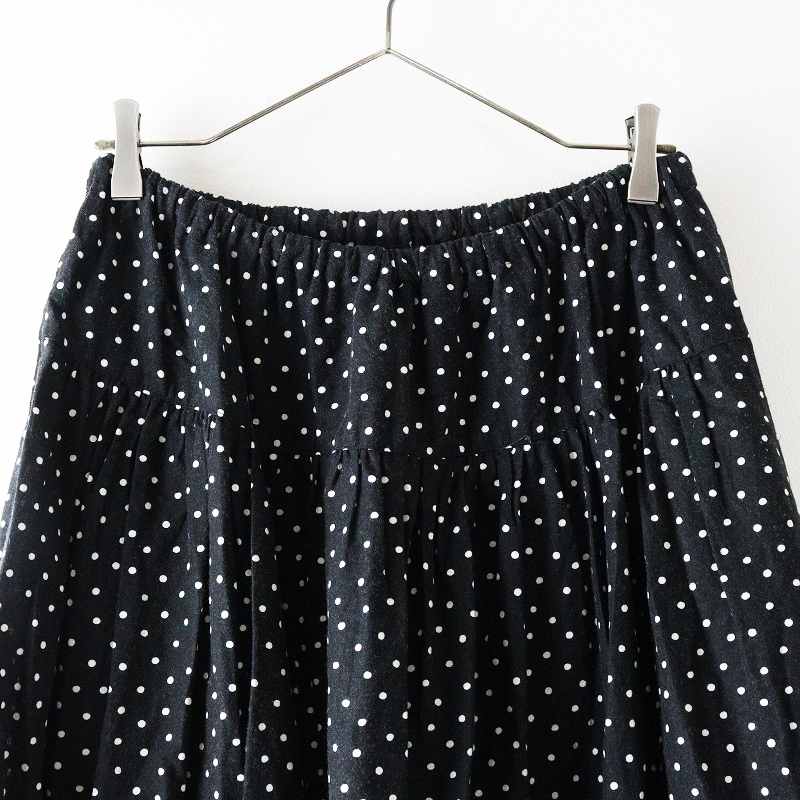イナ ina コットンリネン ドットプリント イージーロングスカート ブラック┃水玉 ボトムス【2400014657043】 收藏