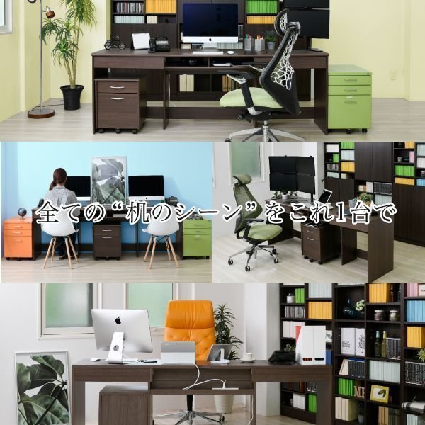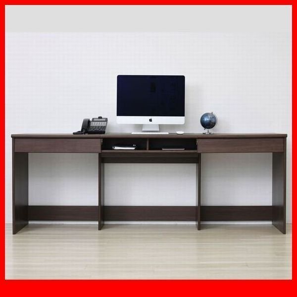 机★ワイドデスク W200/ワークデスク オフィスデスク パソコンデスク システムデスク/配線収納 大容量の引き出し収納 背面化粧/ブラウン/a3 收藏