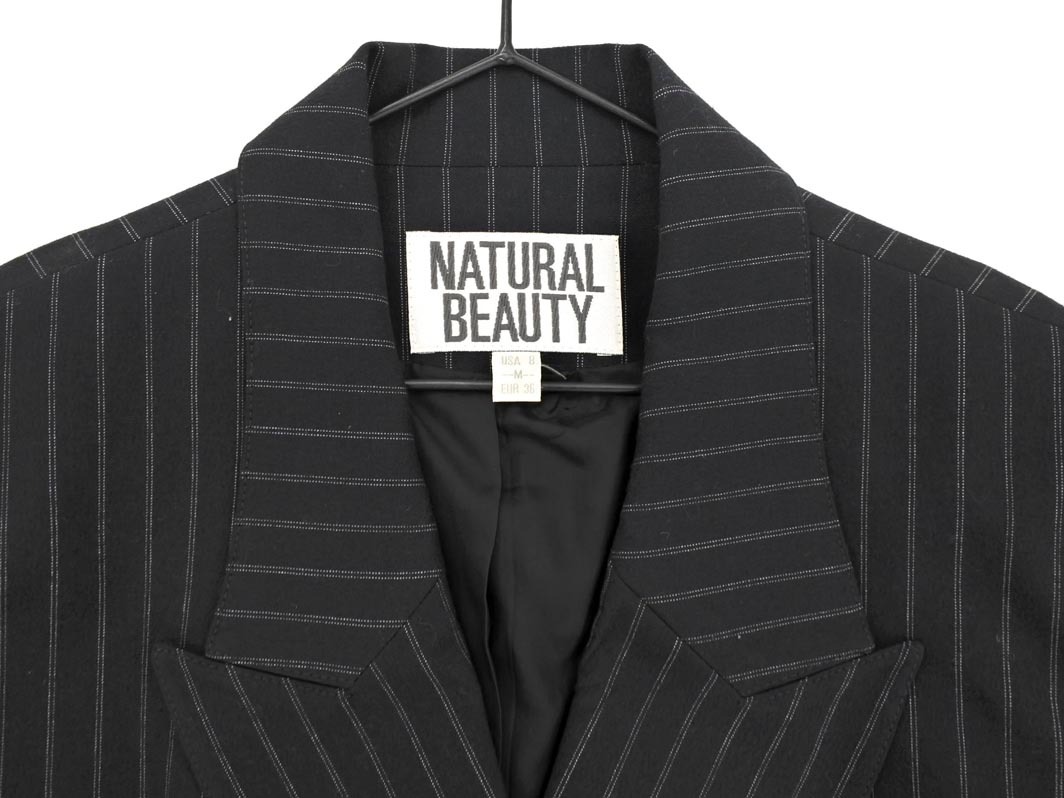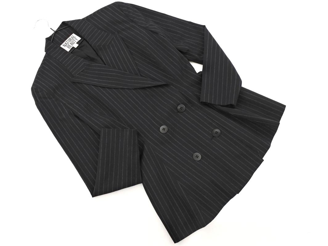 NATURAL BEAUTY ナチュラルビューティー ストライプ ジャケット sizeM/黒 ◇■ ☆ fjc3 レディース 收藏