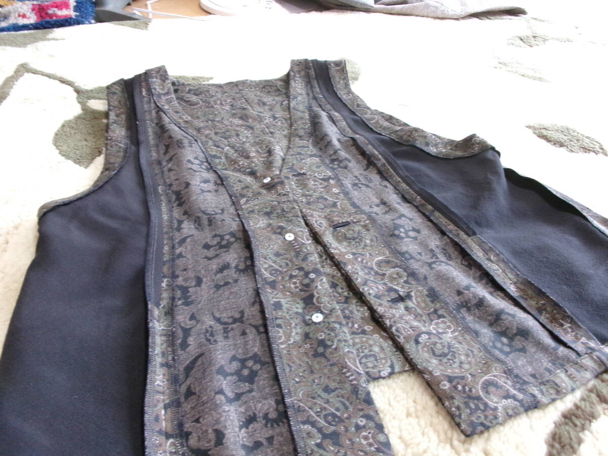 着物リメイク★ポケット付きベスト★正絹・ウール地★Lサイズ★着丈57㎝★共布でボタンホール・見返し★袖ぐりゆったり 收藏