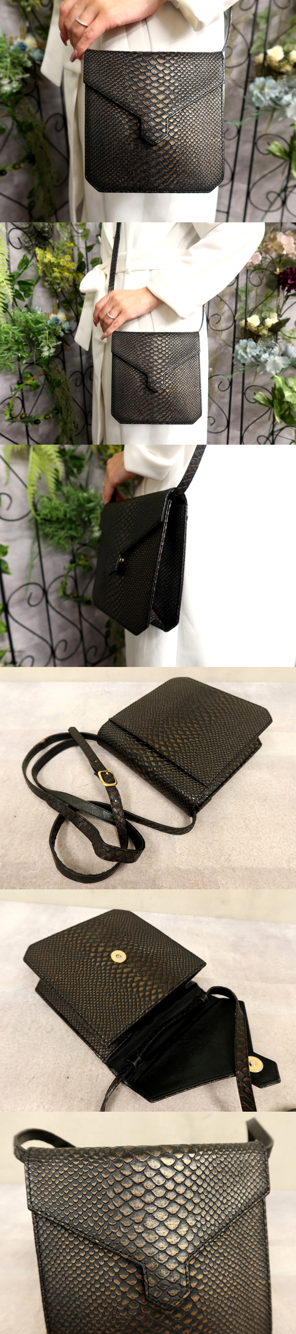 ●超美品●YSL Yves Saint-Laurent イヴ・サンローラン●パイソン 型押し レザー 本革●ショルダー バッグ●黒 ブロンズ●G金具●Js61694 收藏