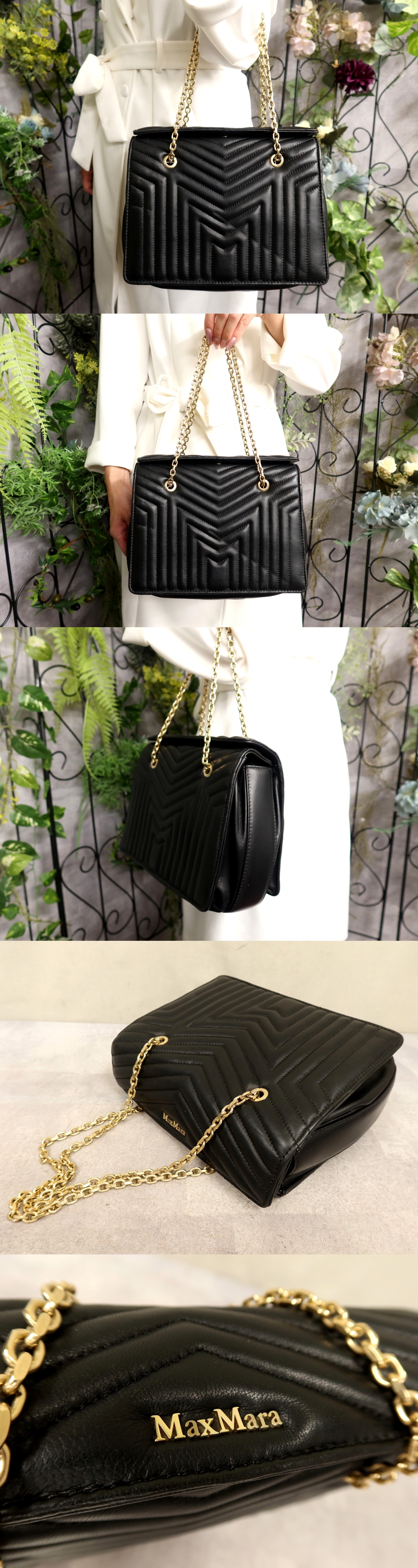 ●超美品●Max Mara マックスマーラ●ロゴ金具●キルティング レザー 本革●チェーン ショルダー バッグ●黒●ゴールド金具●Js61706 收藏