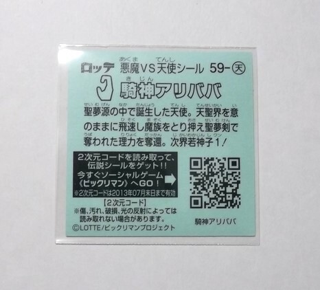 スリーブ入り美-極美品 ロッテ ビックリマン伝説3 悪魔VS天使シール 天使-59 騎神アリババ 收藏