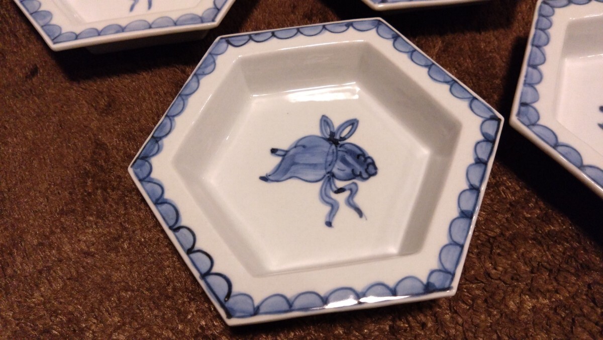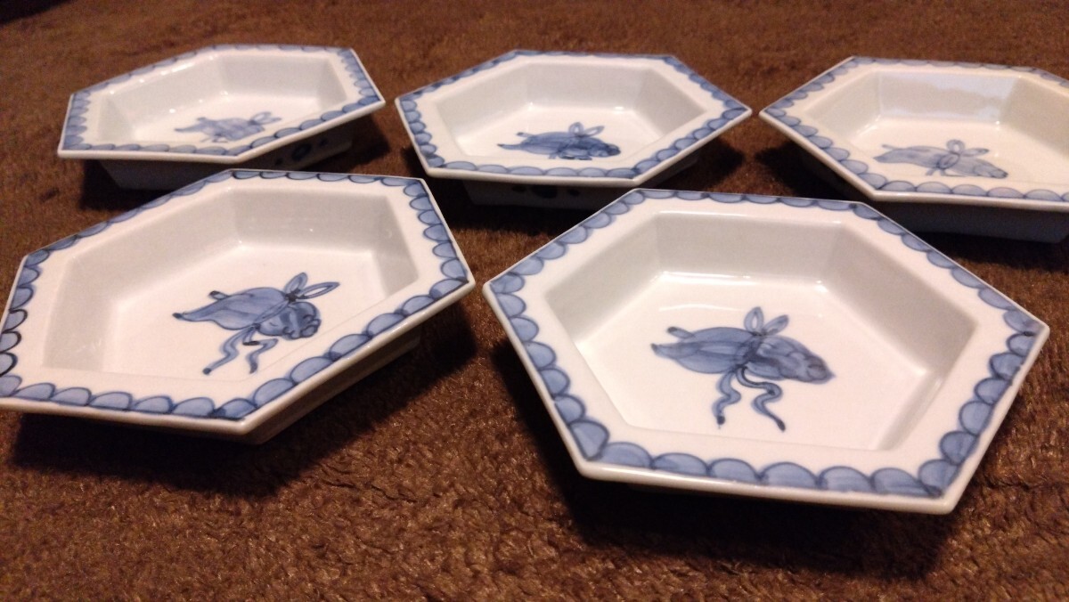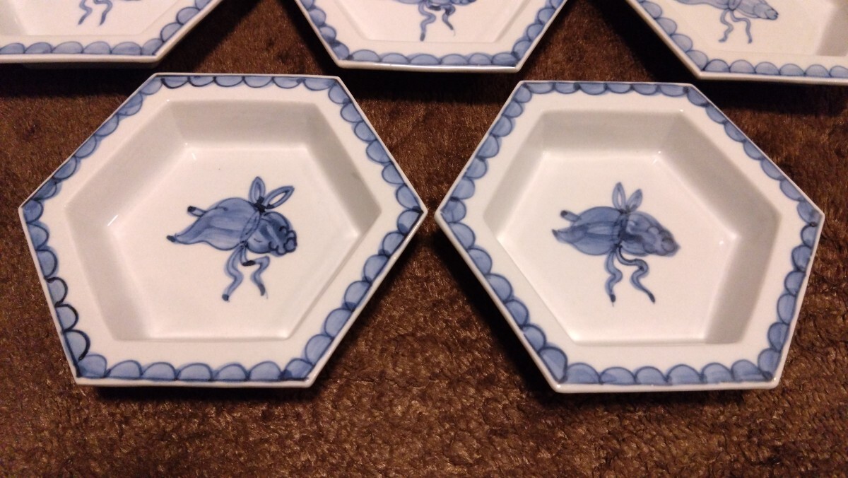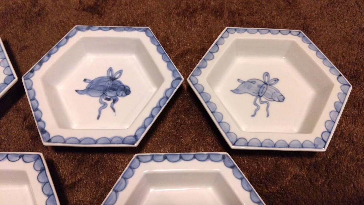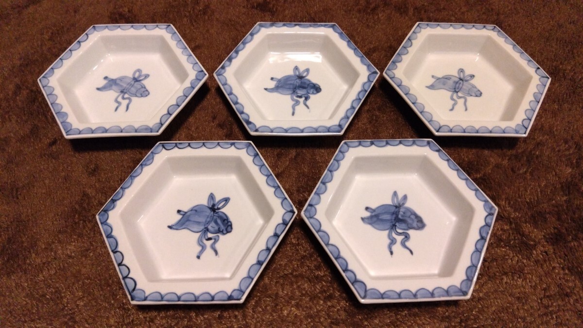 古伊万里 伊万里 染付 六角鉢 菓子鉢 足付き 蔵出し 5客