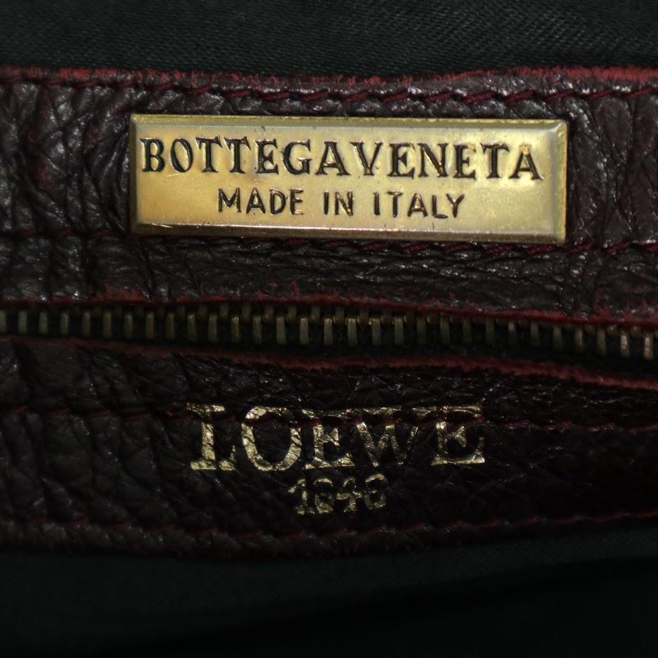 【希少】ヴィンテージ Bottega Veneta×Loewe コラボ ダブルネーム ショルダーバッグ レザー ボルドーロゴ金具 ゴールド金具 通勤通学 旅行 收藏