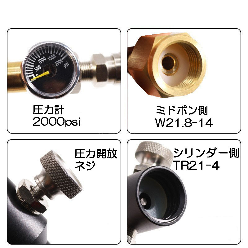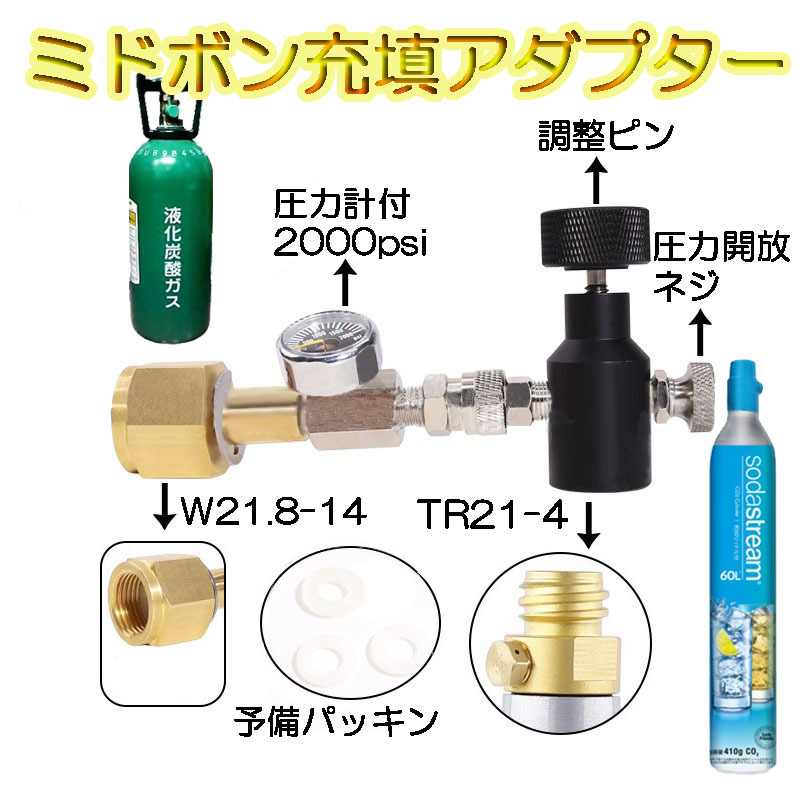 【予備パッキン付】ソーダストリーム ブルーガスシリンダー[TR21-4]ドリンクメイト 炭酸ボンベ(ミドボン)直結 充填 アダプター 圧力計付 收藏