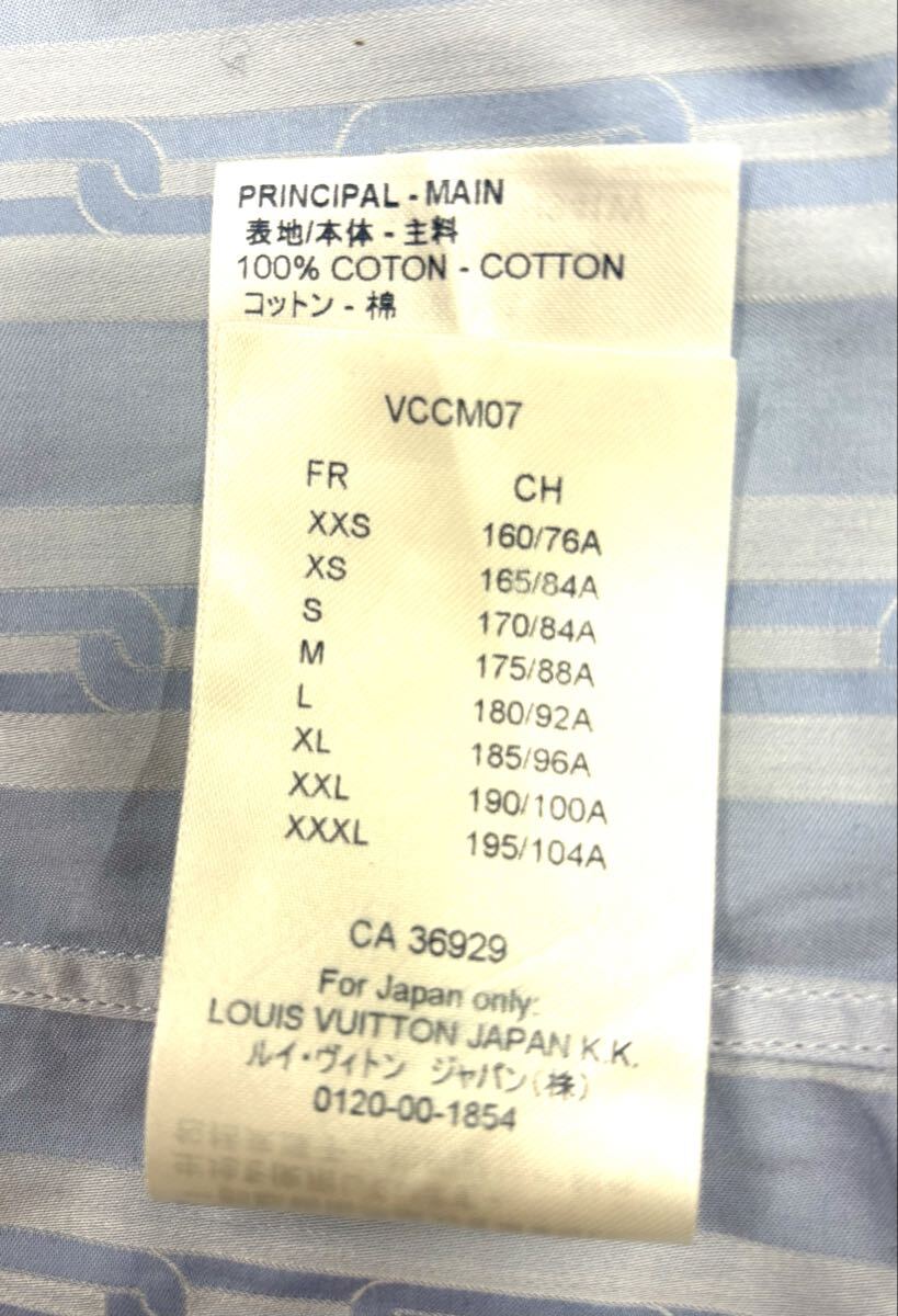 【中古品】LOUIS VUITTON ルイヴィトン チェーンプリント ストライプ 長袖シャツ ブルー コットン100% トップス サイズ S 洋服 收藏
