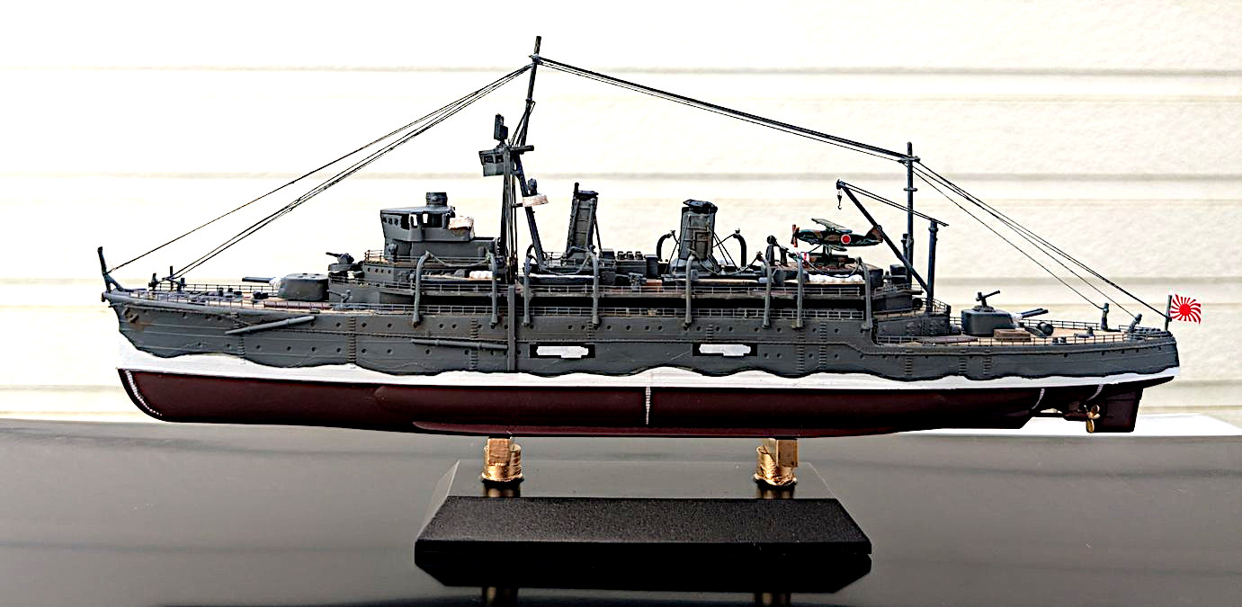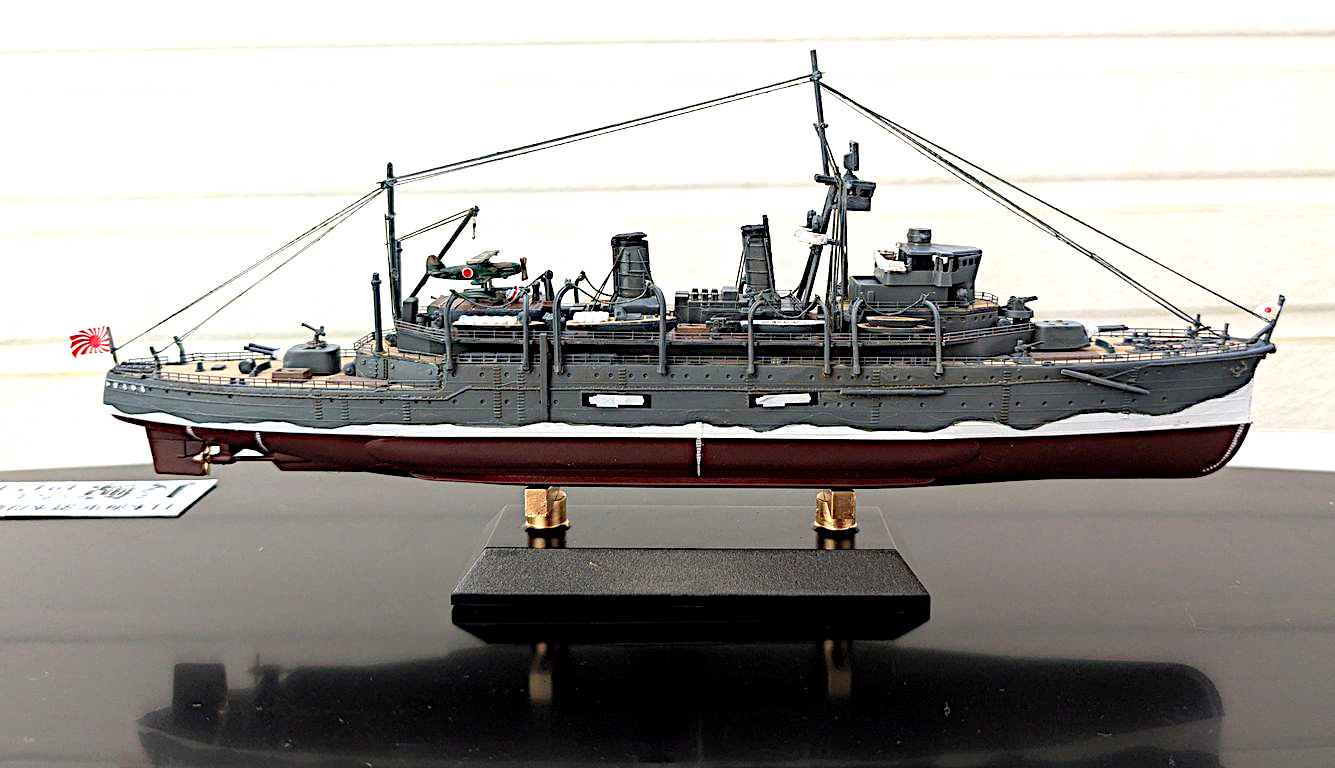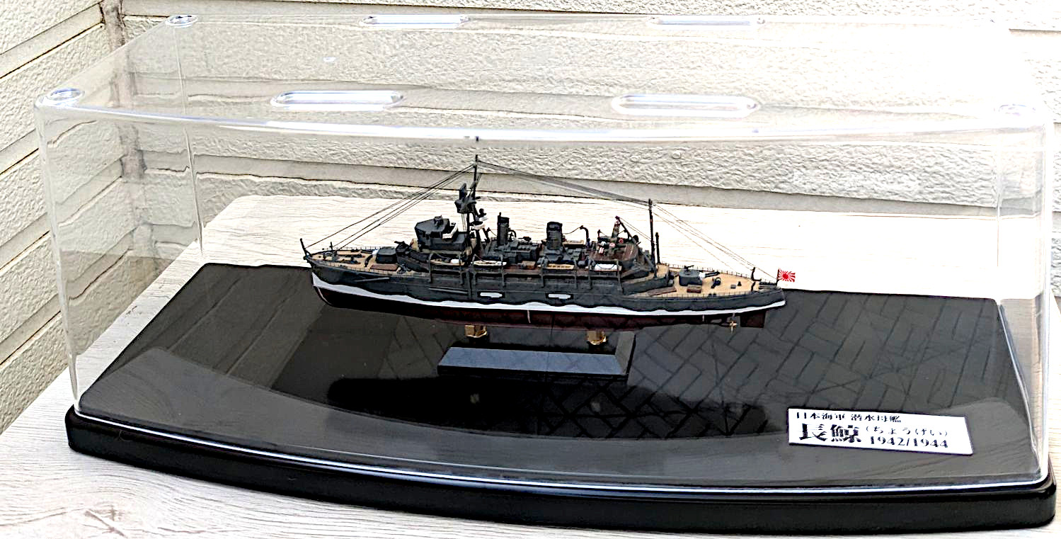 潜水艦母艦の長鯨は大と一緒に1942年の4月10日、呉鎮守府に配備されました。当時のラバウルから沖縄にかけてを転戦し、1944年には潜水部隊の練習艦として配備、これは回天の訓練業務も関連したと思われます。 太平洋戦争にて5月の呉空襲にて艦前部と環境を破損したものの、艦としては保持したまま終戦を迎え、応急修理のまま復員業務に従事、翌年、8月15日に任務を解かれ解体されています。<p>
