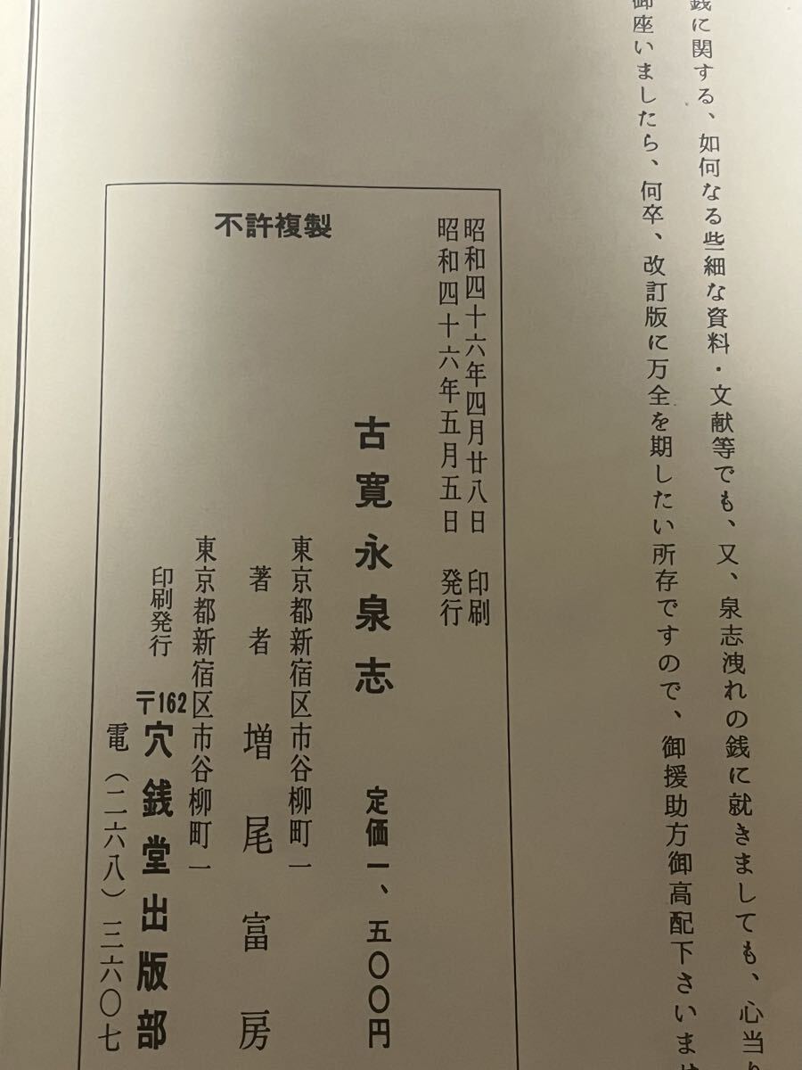 古寛永泉志 増尾富房 昭和46年  穴銭堂出版部