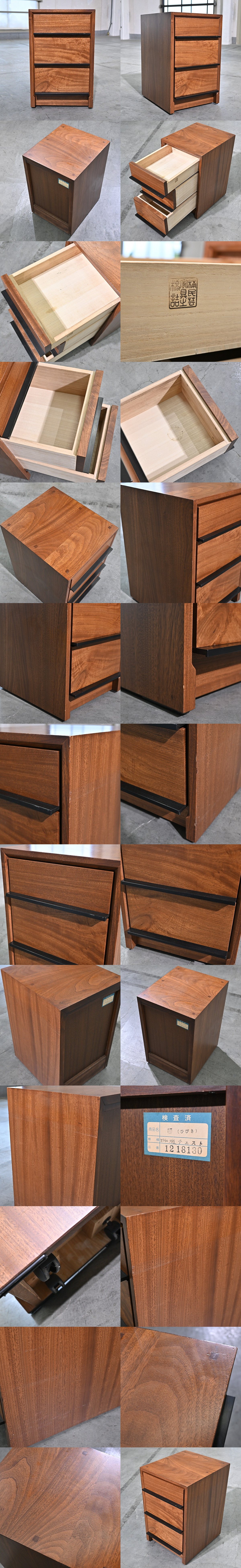 橋詰家具「響」サイドチェスト ウォールナット材 3段 引き出し ドロワー キャスター 収納 リビング ダイニング 寝室 北欧スタイル 民芸 收藏