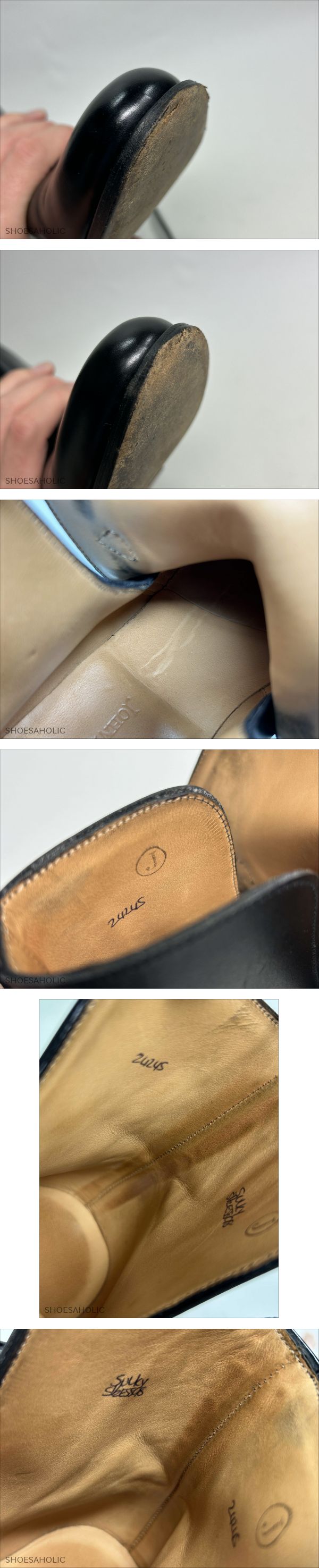 | 商品説明 | ●ご試着について:最下段の<特定商取引法>に記載のある東京都国立市の実店舗にてご試着可能です。 ●出品ID:696 ●管理コード:5310 ●ブランド:ジョンロブ(レディース) ●商品詳細:ジョッパーブーツ #5898 J刻印(正確な理由は不明です) ●サイズ・ワイズ :5.5E ●右足のソールの実寸: 全長: 26.3cm  最大幅: 9.2cm ●カラー:ブラック ●素材:カーフ ●付属品 (  )箱 (  )シューツリー (  )その他(    ) *上記のシューツリーに( 〇 )の記載の無い商品は撮影用のツリーのため付属しません。 *箱はヨレ、キレ、スレ、シミ等がある物もありますので、おまけとお考え下さい。 ●全体的な状態:B ( A:試着程度  B:使用数回  C:極上  D:美品  E:中古  F:一部訳あり) ●アッパーの状態 (  )  試着程度品ですが試着シワ・保管スレキズがあります。  ( 〇 ) スレ、キズ、履きシワがあります。 ( 〇 ) 色ムラ、シミがあります。 ●ライニングの状態 (  ) 試着程度品ですが保管スレキズ・保管シミがあります。  ( 〇 )靴の内側に履きシミがあります。 ( 〇 )靴の内側にスレがあります。 ●ソールの状態 (  )試着程度品ですが試着スレキズ・保管シミがあります。  (  )ハーフラバーが貼ってあります。 (  )トゥはスティール・ラバー・レザーが付いています。 (  )ソールは交換されています。 (  )ヒールは交換されています。 ●特記事項 ・ソールのトゥに減りがあります。 ・ソックシートにスレがあります。 ・ヒールカウンターに縫い代跡があります。 ーーーーーーーーーーーー<お知らせ>ーーーーーーーーーーーーー ●お問い合わせについて:質問フォーム またはお電話でお願い致します。 ●実店舗について:店名:シューホリック 所在地:東京都国立市東2-6-6 フジノビル2階 ●営業日について:公式サイト上トップページの「インフォメーション」にてご確認下さい。 ●発送について:定休日・臨時休業日・土日祝日・休暇中 以外の営業日に行います。 ●送料について:ヤマト宅急便 元払い(日時間指定・営業所止め可)の全国一律1000円(北海道、沖縄は+500円) ●入札について:落札後24時間以内に必ず連絡の取れる方、落札後3日以内に決済可能な方のみご入札下さい。 ●お値引きについて:承っておりません。 ●返品について:商品の不備や記載ミス以外、気に入らなかった、サイズが合わなかったなどお客様都合での返品は受け付けていません。 ●評価について:評価は基本的に当ストアよりは差し上げておりません、ご希望の場合お知らせ下さい。 ●同時販売について:実店舗や公式サイトでも併売をしているため、以外で完売後に上で掲載の取り下げが間に合わない場合があり、ご落札後のキャンセルをさせて頂く場合があります。 ●特定商取引法に関する表記● ・販売業者 株式会社 シューホリック ・事業内容 高級靴・高級鞄を専門に販売、輸入および買取業務。 ・運営統括責任者 井上 祐太 ・古物営業許可証 株式会社 シューホリック 東京公安委員会 308891606450 ・郵便番号 〒186-0002 ・住所 東京都国立市東2-6-6 フジノビル2階 ・電話番号:042-508-3596  会社携帯電話:070-4100-5694 ・お支払い方法 かんたん決済 ・お支払い期日 ご落札後 3日以内 .25  |