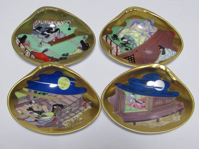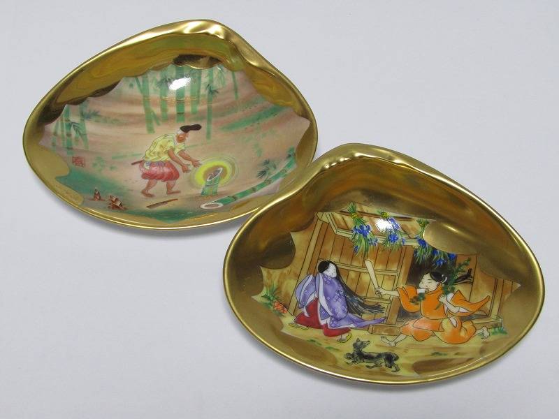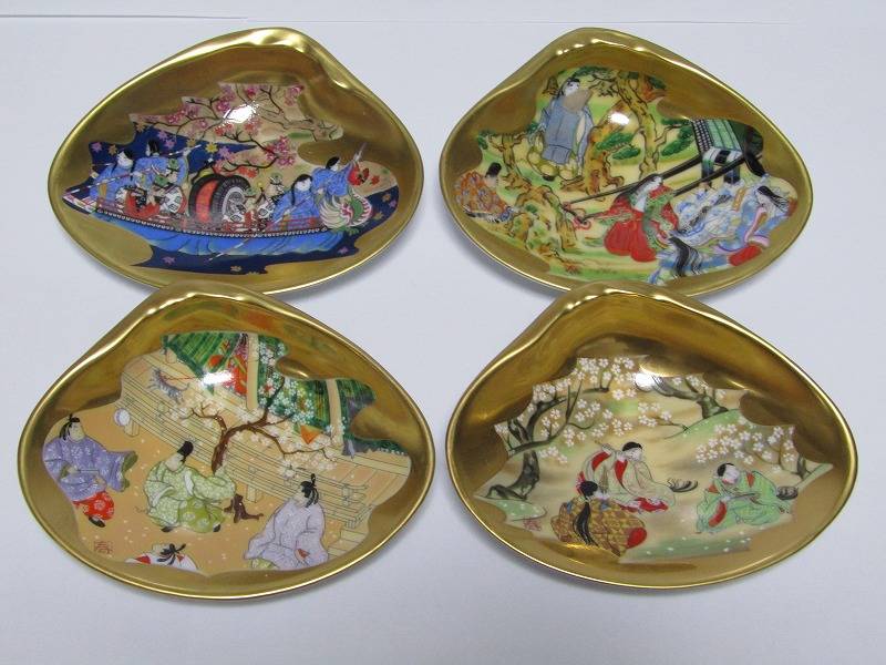 豪華絢爛 王朝物語十八選の内 落窪物語 貝合わせ コレクション 34枚 金彩 陶器 貝絵皿 kl13-6055[VOX] 收藏