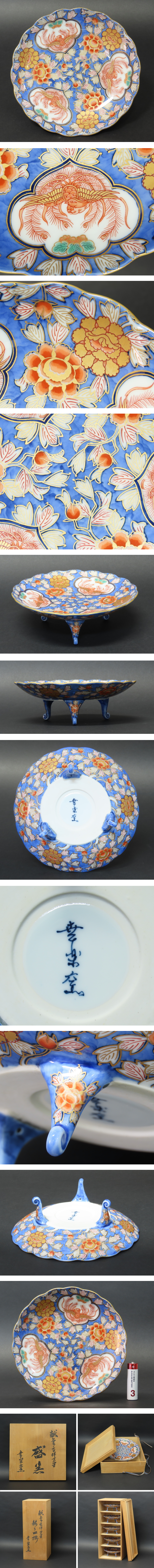 【月】【骨董 茶道具54】献上手 古伊万里写 幸楽窯 色絵金襴 三ツ足 盛皿・銘々皿5客 共箱 / おせち料理 收藏