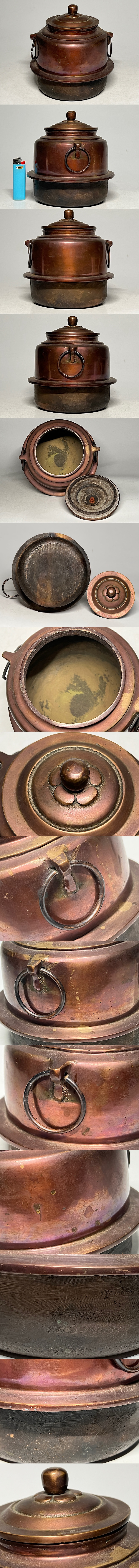 銅製 羽付釜 銅釜 茶道具 重さ:2158g ◆商品詳細 寸法(約):15.9x14.5x9.4(摘みまでの高×耳まで幅x口径㎝) 蓋重さ:324g 総重量: 2158g ※寸法に若干の誤差が生じる場合もございます。 水を24時間はりもれませんでしたが、 のちのご使用による水もれ、破損は保証できませんので、ご承知ください。 経年の汚れ、青錆、作成時にできたカタのへこみや、スジ、膨らみがあります。 底や、中の状態も含めて画像で確認の上各自の判断で入札お願いします。 上手な直し(釜補修)があった場合、見ただけでは当方もわかりませんので、 あると思って承知して入札して下さる方が良いと思います。 ◆発送先等のご連絡とお支払いについて ※発送先等のご連絡 落札時から48時間以内にお願い致します。 ※お支払 かんたん決済の期限内にお願い致します。 ※複数点落札時にまとめて取引の場合(72時間内)に、 まとめて取引の取引手順(落札者方の操作)を参考にお願い致します。 梱包したサイズを測って、地方によって送料を決めますので、よろしくお願いします。 ◆掲載画像について ※画像は現物を撮影しておりますが、照度、遮光、モニターによっては実物と 色目が異なって見えることがありますのでご注意ください。掲載画像では確認 できない傷や汚れがある可能性もございます、あくまで中古品であるというこ とをご承知の上、御入札をお願い致します。 ◆補償について 商品到着後はすぐに状態の確認をお願い致します。 商品の破損等がございまし たら、箱や梱包材など全てそのままの状態で保存し、お早めにご連絡ください。 (到着日から一週間以上経過、梱包材の廃棄済み等の場合、保証は致しかねます のでご注意ください。) ◆返品について 思っていたイメージと違う、などのお客様主観による返品はお受けできません ので、予めご了承ください。ノークレーム、ノーリターンでお願いします。届 いた商品が商品説明と著しく乖離している等、当店に原因のある場合には、お 早めにご連絡ください。 ◆注意事項 当方の希望価格と隔たりがある場合は、終了前にやむなく取下げさせて頂く場 合がございます。 ※商品ご落札翌日から4日間以内にご連絡が取れない場合は、入札取消の処置を 取らさせていただく場合がございます。 ※評価の悪い方は取り消す場合がございます。 ※原則として当方の不備以外のキャンセル・返品・返金は受け付けておりません。 以上の点を予めご了承頂いた上で、入札・落札お願い致します。 ◆発送方法 ▼ゆうパック(補償あり/追跡あり) 梱包後のサイズ:~60cm ※送料全国一律880円 (但し北海道、沖縄、離島は+500円いただきます。) 発送元は静岡県となります。 ( 商品の組み合わせによっては同梱をお断りさせていただく場合があります。) ※大型商品について 郵便局の規定を超える商品の場合は、佐川急便またはヤマトでの発送となります。 |