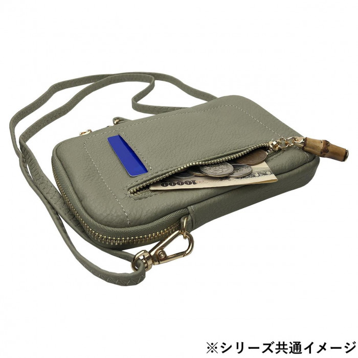 | 幅広20cmのコンビニサイズエコバッグが付属されたスマホポシェット。ソフトタッチのシュリンクフェイクレザーを使用し、バンブーの引き手がワンポイント。前面のファスナーポケットにお金が収納でき、カードポケットが4つ。中央のファスナーポケットにスマホとエコバッグを収納すればこれ一つでちょっとしたお出かけに最適。 ※お使いのパソコン・モバイルのモニターによっては、実際のお色と若干違いが出る場合が御座います。予めご了承下さい。 ※本商品はスマートフォンを保護するものではありません。 |