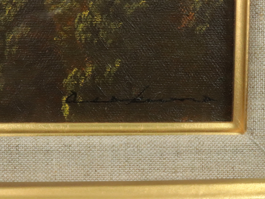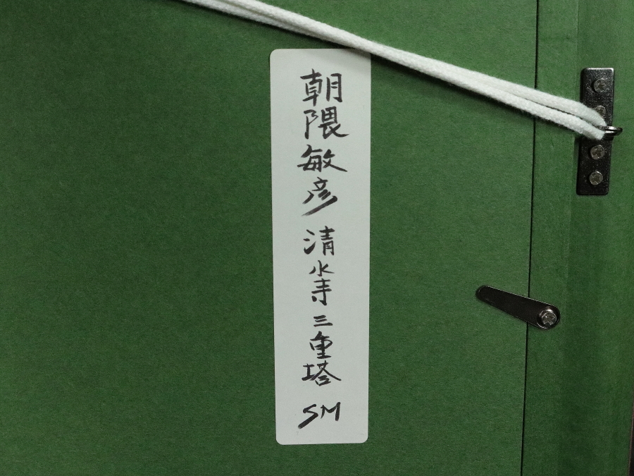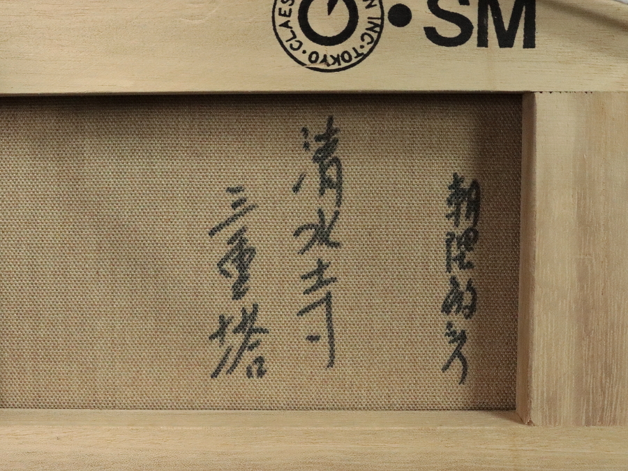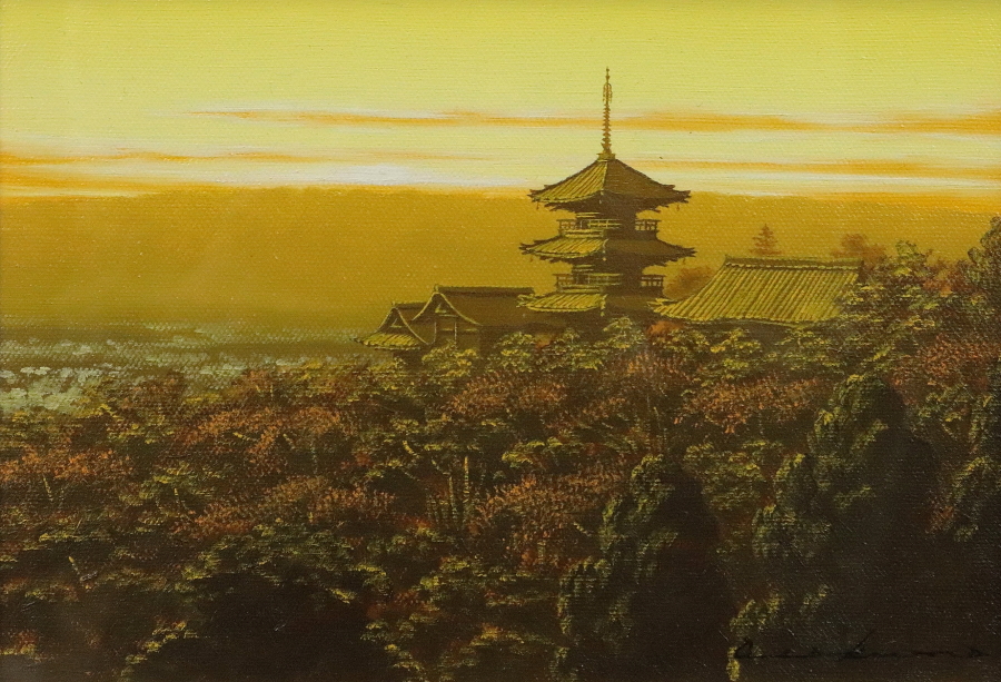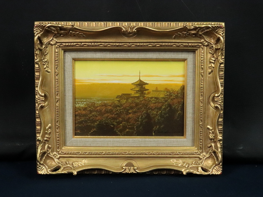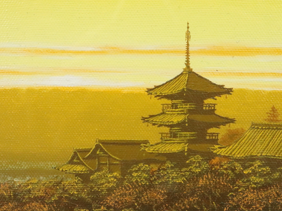 12031■【真作】朝隈敏彦 「清水寺三重塔」 キャンバス 油彩 肉筆 裏書き有 福岡の人 飛翔会員 額装 收藏
