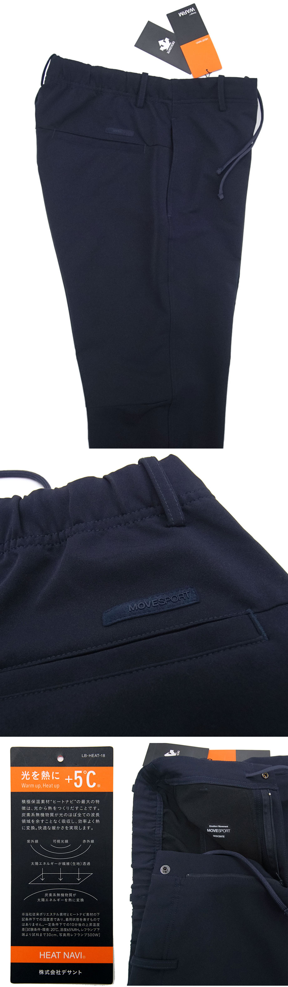 ●細部に至るまでのこだわりとテクノロジーを兼ね備えたプロダクト【MOVESPORT ムーブスポーツ】。軽量、4WAYストレッチ性に優れた素材【AIRY TRANSFER エアリー トランスファー】にデサント独自の光を熱に変える発熱素材【HEAT NAVI ヒートナビ】を搭載したテーパードパンツ。優れたストレッチ素材、人間工学に基づいたデザインで抜群の動きやすさを実現。見た目だけのファッションブランドと異なり、機能性・耐久性を兼ね備えたおすすめの品です。