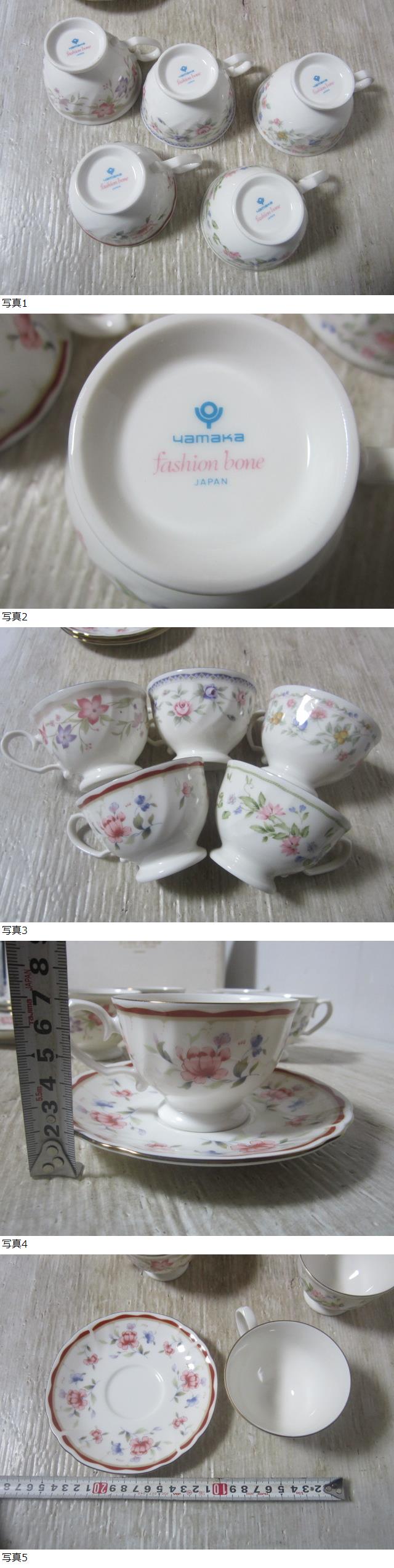 Yamaka/ヤマカ Fashion Bone JAPAN カップ&ソーサー 5客 おしゃれ 可愛い 花模様 未使用品 收藏