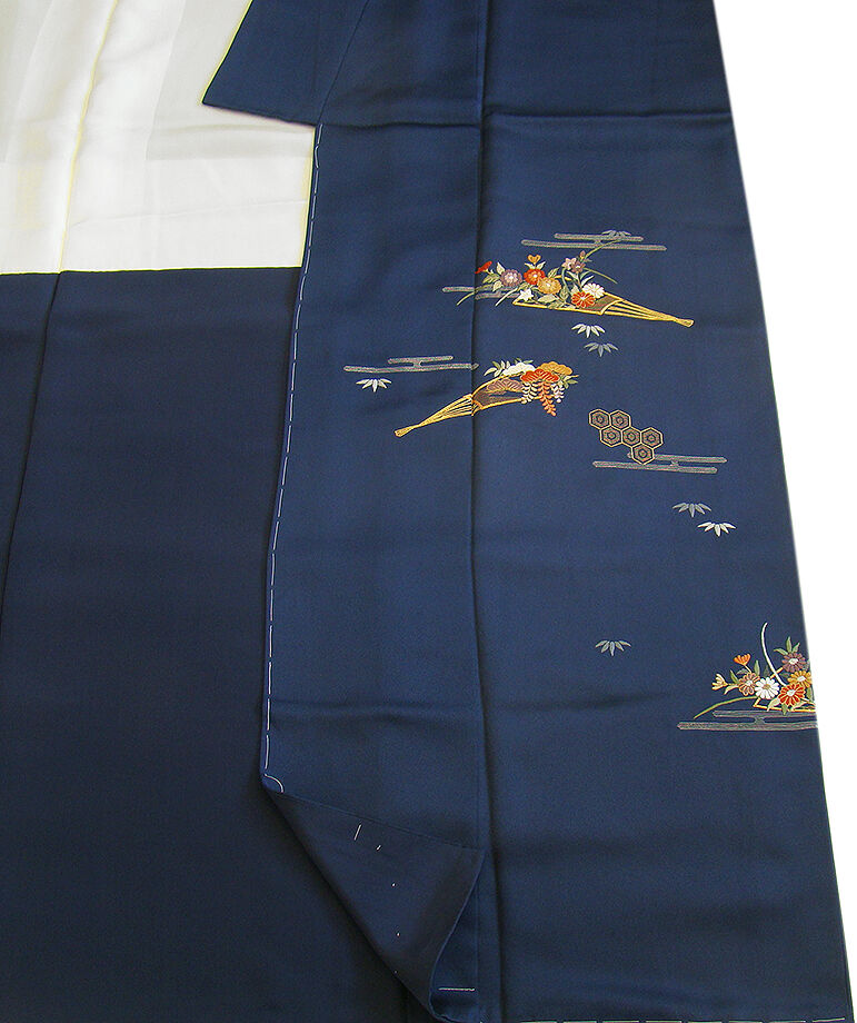 | 商品説明 | こちらのお品は「袷」ですので10月から5月までお召頂ければと思います。 とてもしなやかで柔らかな手触りの滑らかで着心地良い重めの上質な極上一越地の生地、 シックな濃紺色地に四季折々の花草や霞等の極め細やかな刺繍柄、 気品に満ち溢れた彩りが正統派のお着物として一枚は欲しい逸品の素敵なお着物です。 八掛は共色(正絹)、幅広い年代の方にお召頂けます。 |