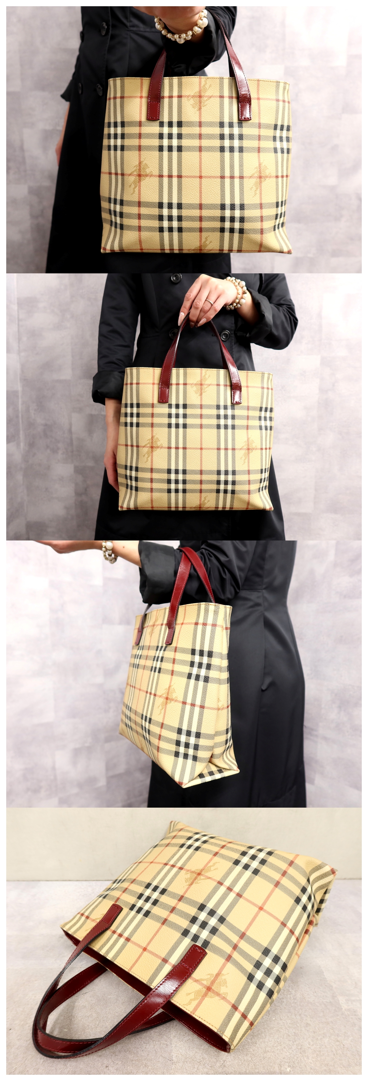●超美品●BURBERRY バーバリー●ノバチェック●PVC カーフ レザー 本革●ハンド バッグ●ベージュ●シルバー金具●B5 収納 書類●Js65262 收藏