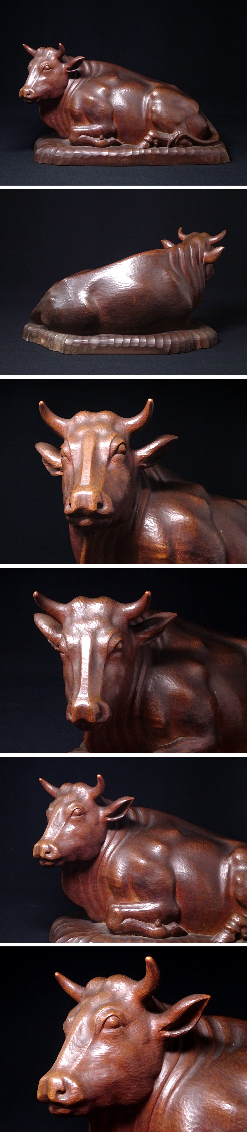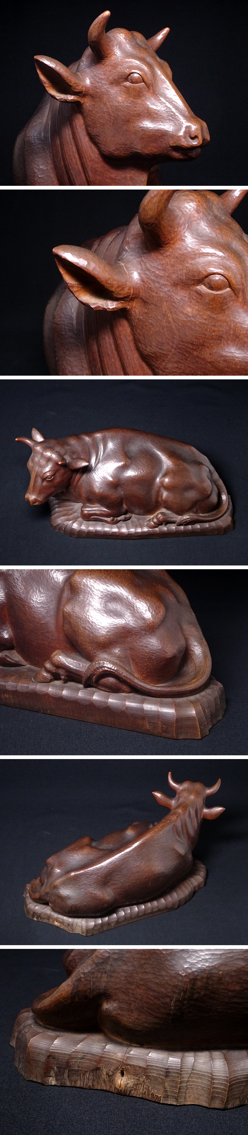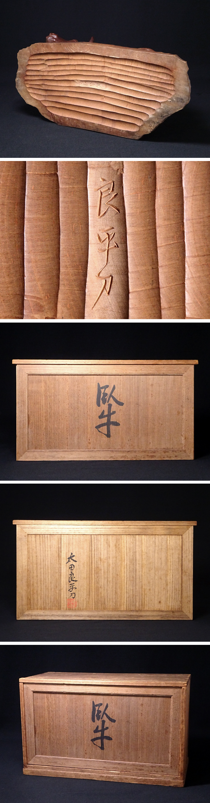 慶應◆日展参与【太田良平】作 木彫『臥牛』牛置物 共箱付 師:北村西望 HIT 收藏