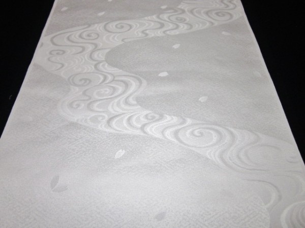 | 【京わぎれ】正絹 白生地はぎれ3枚 琳派流水に花びら散し 1.35m×3枚 計4.05m① | ||||