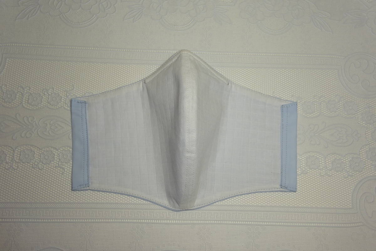 裏側のガーゼは表側より1㎜控えて縫っていますので、表側からガーゼ生地が見えることはありません。(画像をご覧ください)