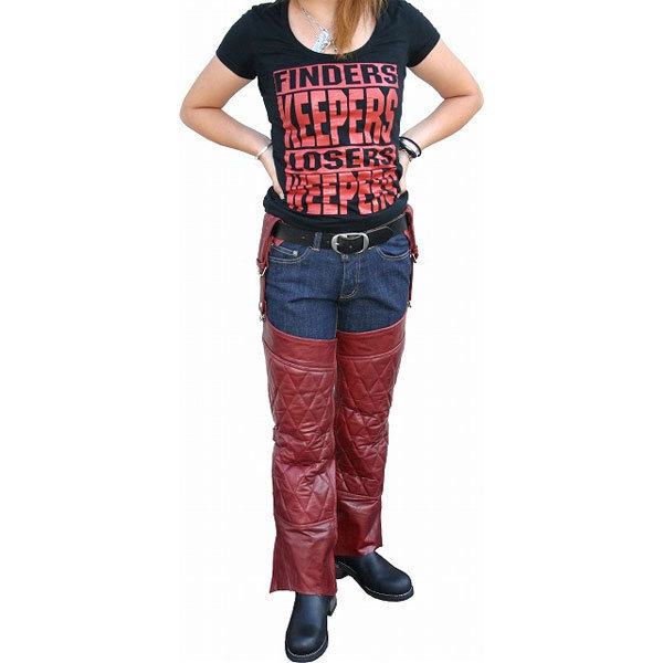 【HEAVY】(XLサイズ) レザーハングチャップス ダイヤモンドパッド レッド ガーターチャップス HUNG CHAPS[HCG-02] 收藏