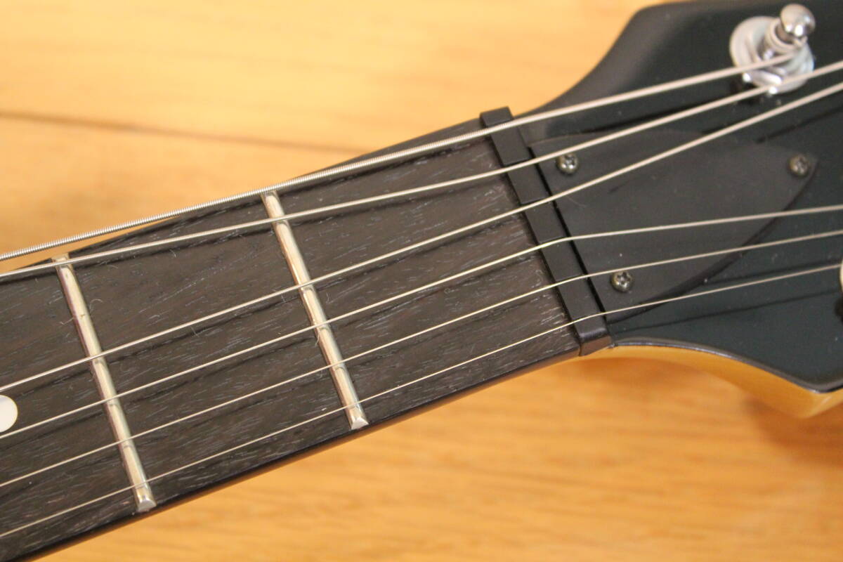 | B.C RICHの大人気モデルのMOCKINGBIRD! 90年代初期頃のテイハツ時代に流通していた『MG-601』になります。 当時のモッキンバードラインナップの中で最もお手軽な価格帯のモデルで、カタログ最後に掲載され、「Modern Version」の文字と共に写真が堂々と載せられていました。 オリジナルハムバッカーによる王道のモッキンサウンドがお手頃に楽しめる一本です。 全体的に傷や打痕 が見受けられます。 トラスロッドの効きは良好で、順反り修正方向、逆反り修正方向共に十分に調整する余裕がある状態です。 ネックの反りはロッドで調整済で、ほぼストレートな状態です。フレットに薄っすらと減りは見られますが、十分に残っており演奏には特に支障のない状態です。 ―商品説明― 【ブランド】 :B.C RICH 【品番】 :MG-601 【定価】 :オープン 【ボディ】 :メイプル 【ネック】 :メイプル 【指板】 :ローズウッド 【PU】 :BC Custom Hambacking PU ×2 【重量】 :4.18kg ―商品状態― 【状態】 :B+ 中古良品 【ロッド残】:締める方向・緩める方向調整可能で±60°まで動作確認済みです。 【ネック】 :演奏上の問題はありません。おおむねストレート 【ナット】:問題なし 【フレット】:約8-9割程度問題なし。 【ボディ】 :キズ、弾きキズがあり 【電装系】 :音出し確認済み。特に問題なし。 【弦高(12F計測)】:6弦 2.0mm1弦 1.75mm セットアップ済み(クリーニング済、ロッド調整・オクターブ調整・弦高調整・PU高さ調整)弦は10-46 12Fの弦高は6弦2mm、1弦1.75mmで調整してあり、ネックはおおむねストレートです。フレット山は演奏に問題ない高さがあり、トラスロッドは締める方向・緩める方向調整可能で±60°まで動作確認済みです。すぐに即戦力としてお使いいただけます。 付属品:ケース無し | |||