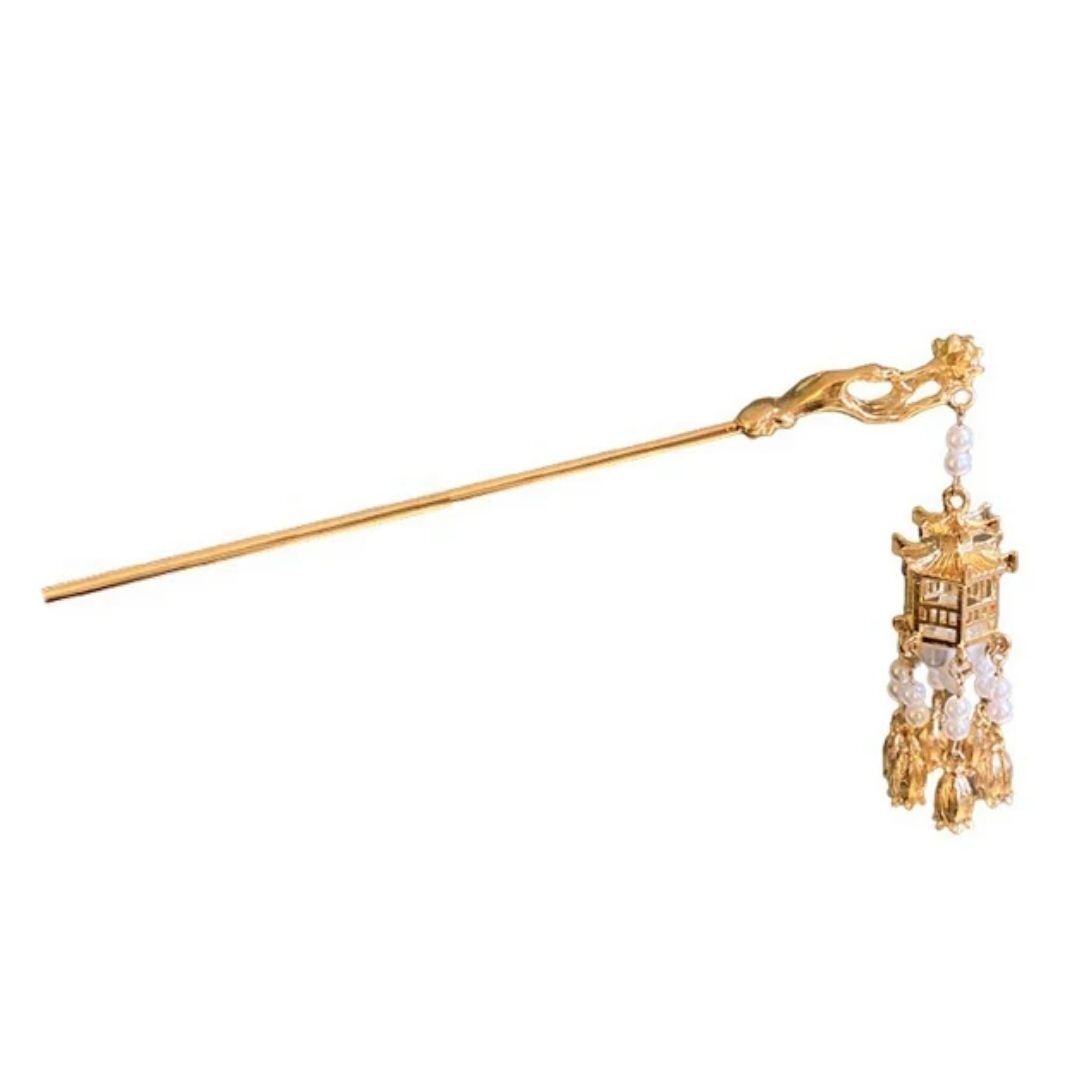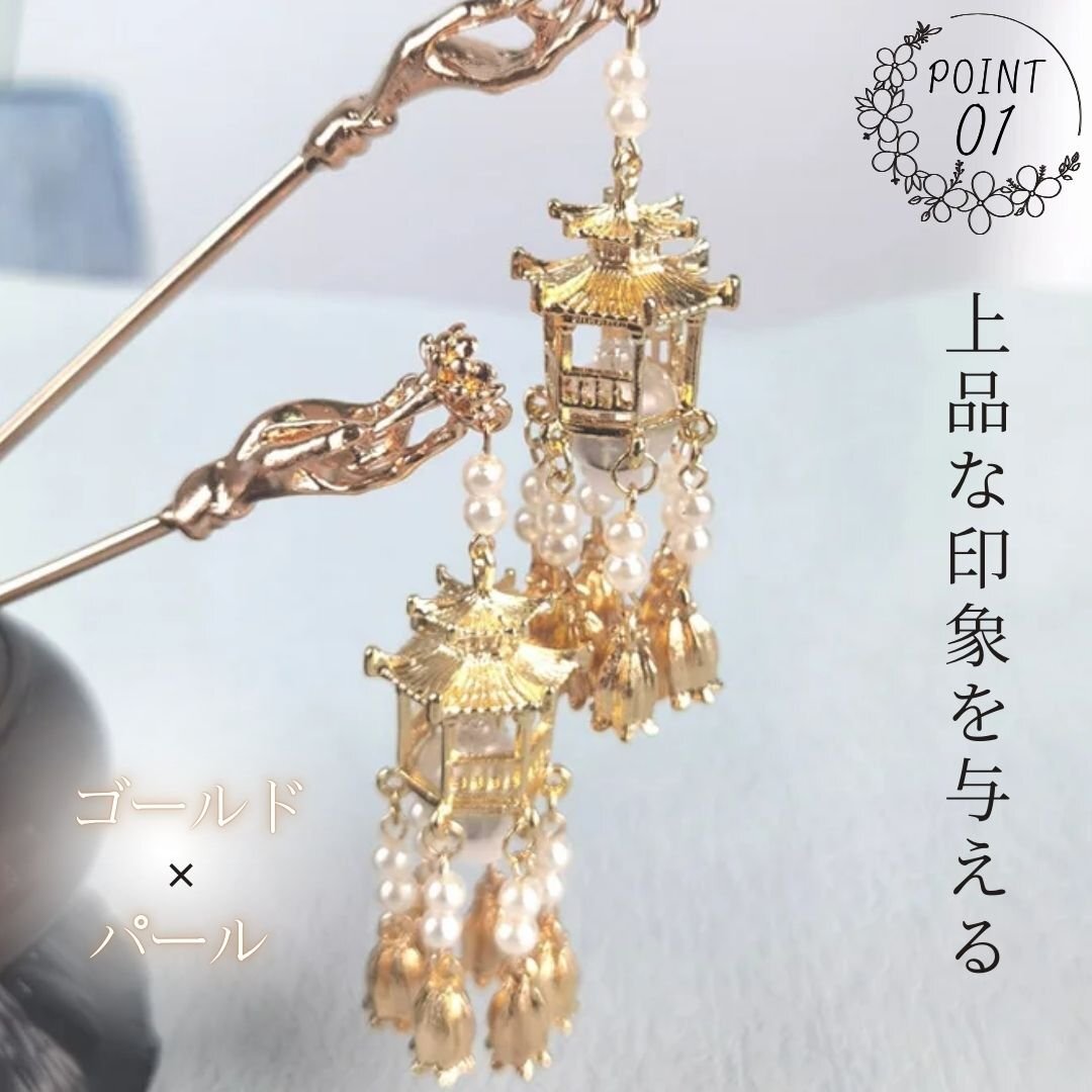 上品なゴールドカラーで普段遣いだけでなくチャイナドレスや、和装ファッション、フォーマルにもぴったりなかんざしです