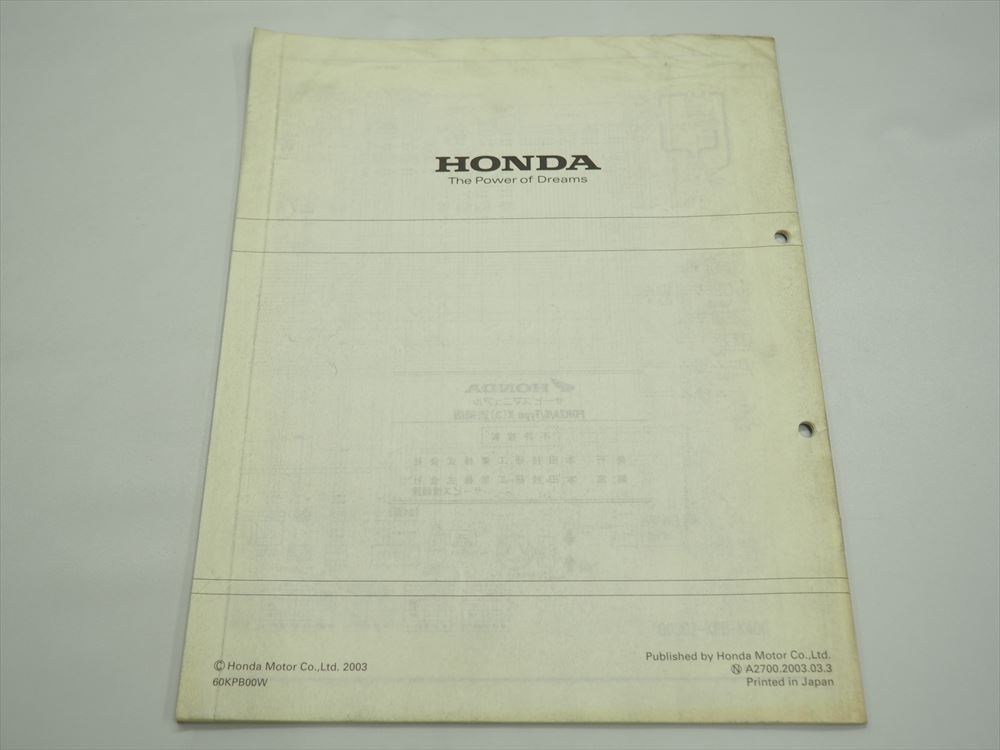| *こちらは追補版になります。 NSS250(NO.60KPB00) に対して変更があった箇所のみの記載になります。 こちらに記載のない内容については、NSS250(NO.60KPB00) を参照下さい。 平成15年3月発行 フレームNO.MF06-1300001 PartNo.60KPB00W 中古誌となりますので、折れシワ、擦れ、汚れはあるものの、 ページの欠損は無く、問題なく読んで頂けます。 (上記以外にも、見落としがある場合もございますので、ご了承下さい。) *配線図有り。 *メーカー製本の純正品です。 *状態をご理解いただいた上、ご検討下さい。 |