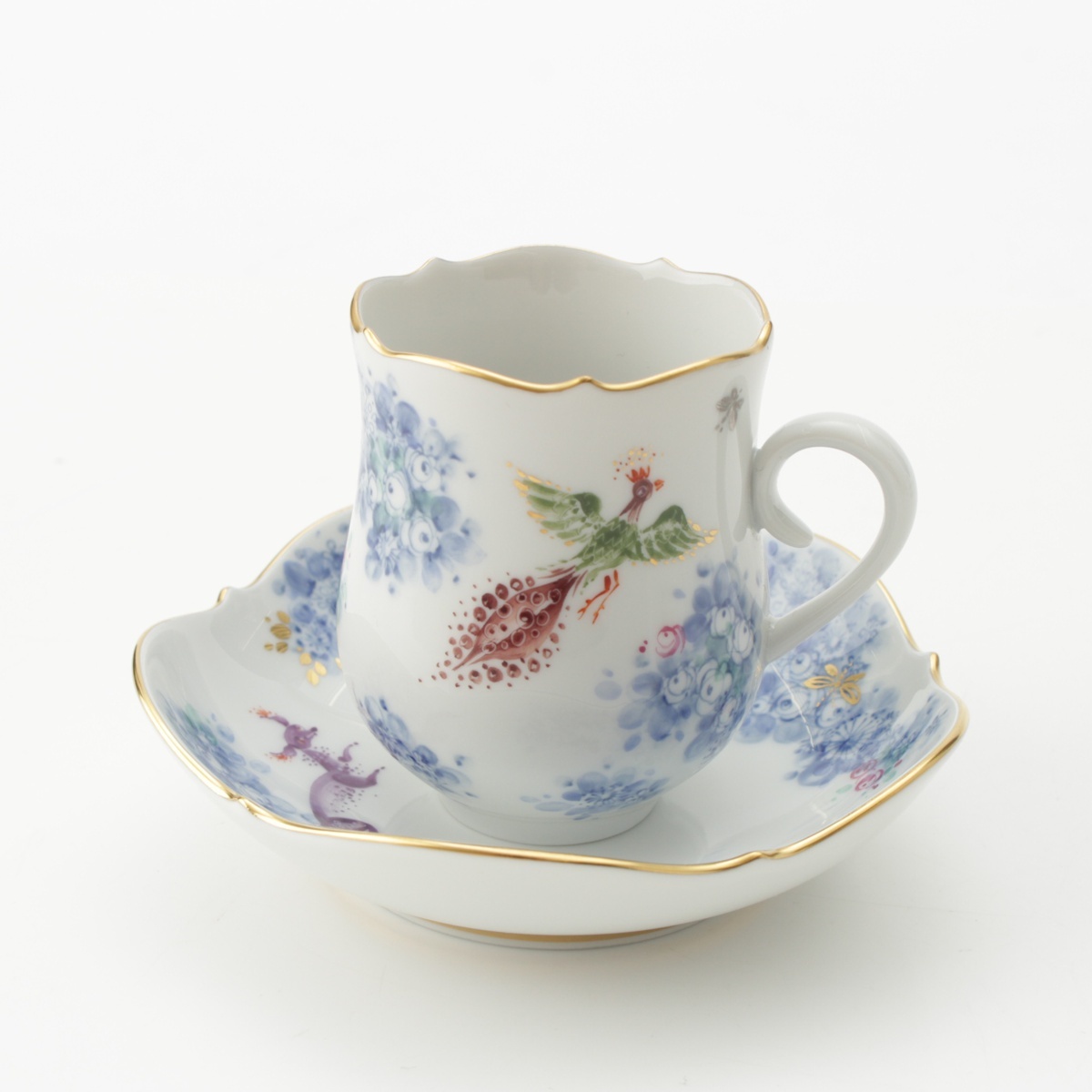 マイセン ミッドサマーナイトドリーム 真夏の夜の夢 モカ デミタス ティーカップ&ソーサ― 6客セット 食器 ホワイト【中古】 收藏
