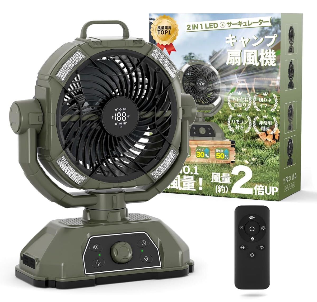 新品、未使用■アウトドア扇風機 キャンプ 充電式 32,000mAh グリーン