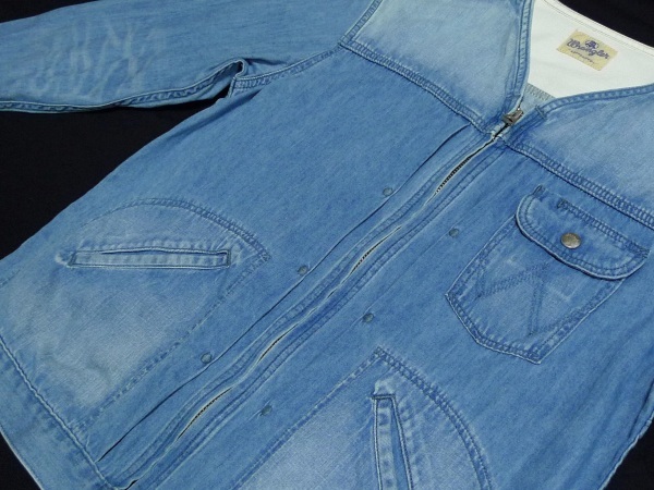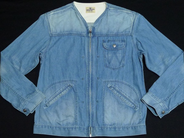 美品MonkeyTime別注Wranglerラングラー[DenimJacket]11MJZ襟無しデニムジャケットS(36)コバルトUsedWash\17600 收藏