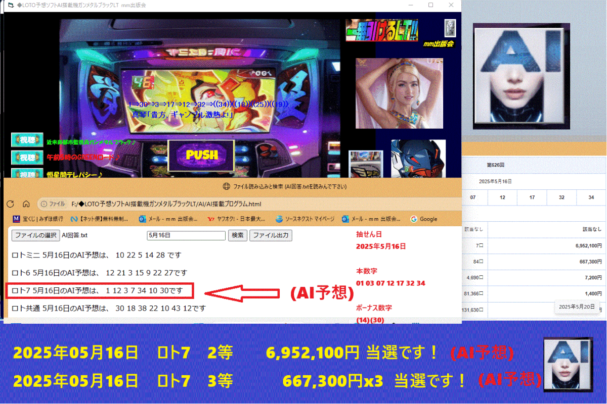 2025年05月16日 ロト7 3等 667,300円 当選です!(AI予想)