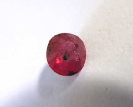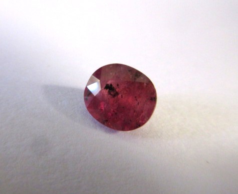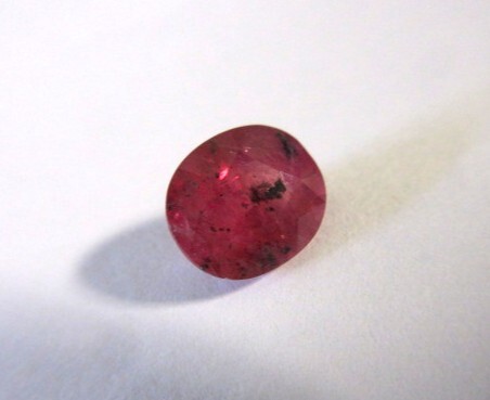 暗ピンクレッドの中に、黒い模様の入ったサファイアです。インクルージョンがあり、ミルキーな透明感です。チラチラと柔らかなテリがあります。UVライトで少し赤く蛍光します。NH
