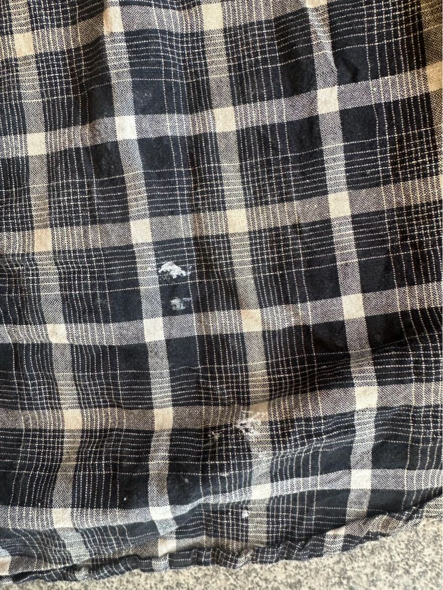 Duck Head 中国製 M 半袖シャツ チェックシャツ 黒 ブラック 柄物 ボタンダウン リネンシャツ リネン コットン 綿 古着 USED ユーズド 收藏