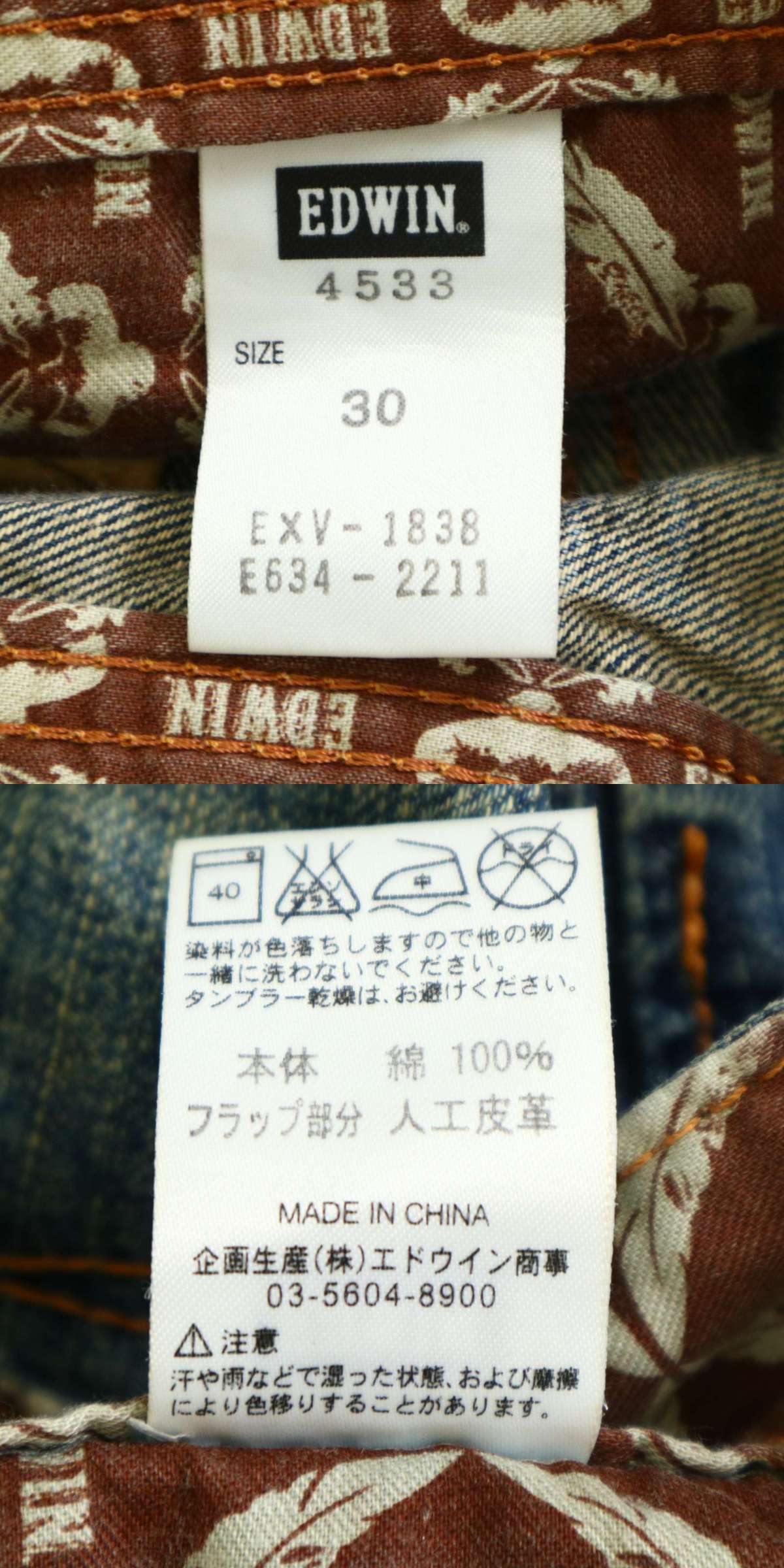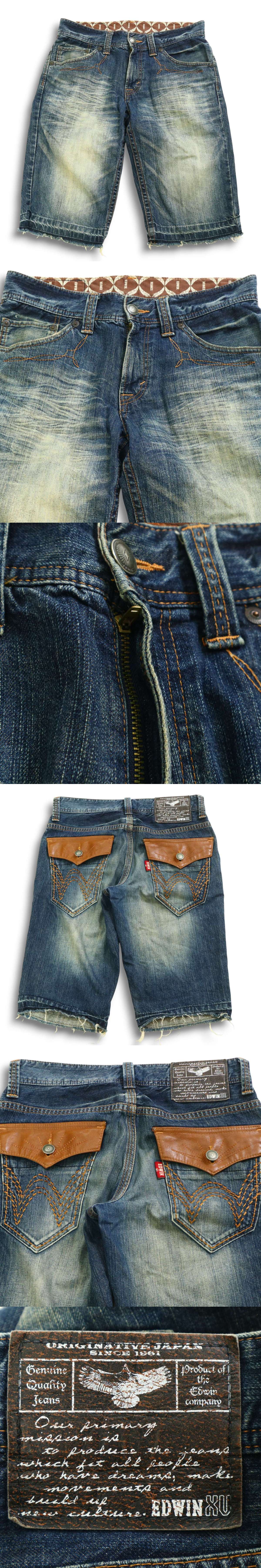 EDWIN エドウィン 4533 春夏 Fレザー使い 加工★ カットオフ ウエスタン デニム ショート パンツ ジーンズ Sz.30 メンズ 收藏