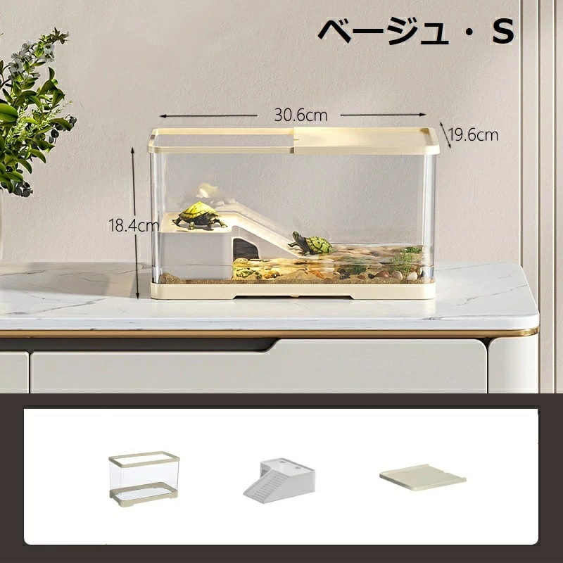 亀の飼育ケース 亀 水槽 大きい カメ用水槽 蓋付き 収納機能 水交換簡単 餌やりが便利 透明 軽量 両生飼育箱 脱出防止 排水孔 360°観察 收藏